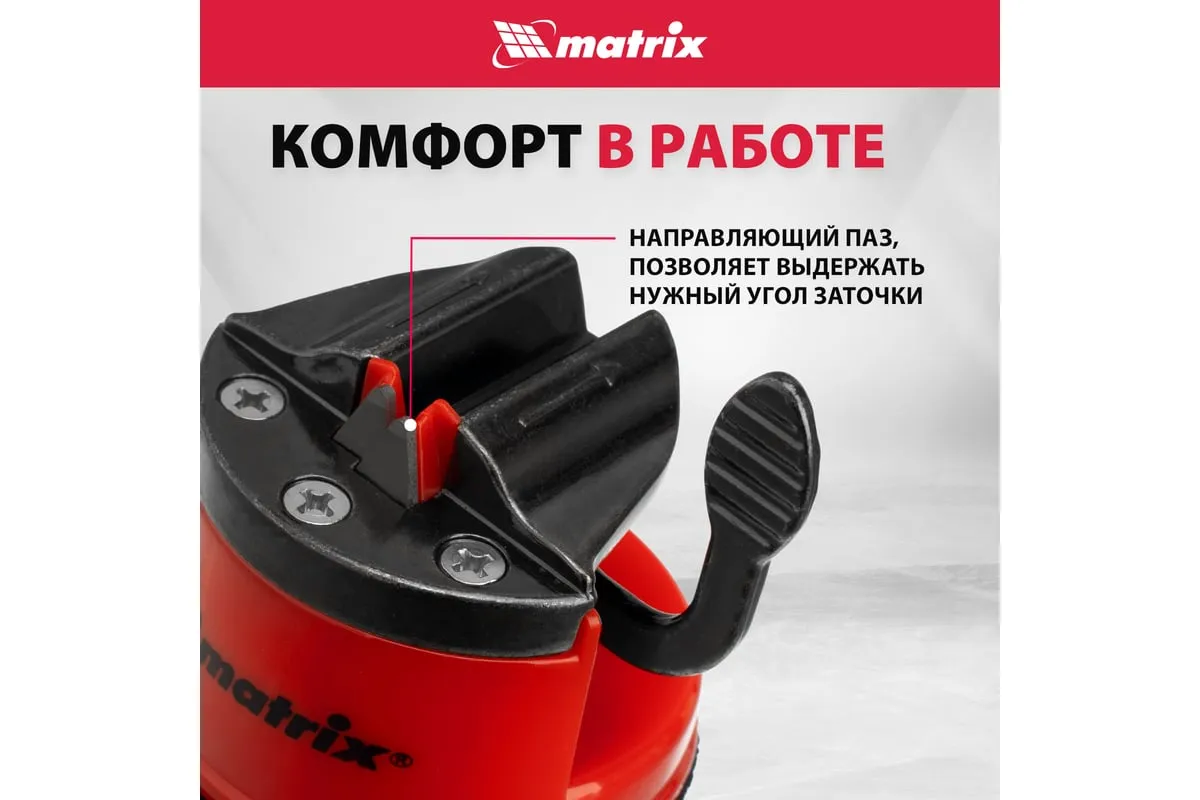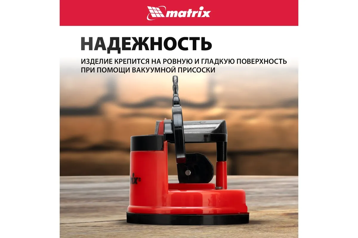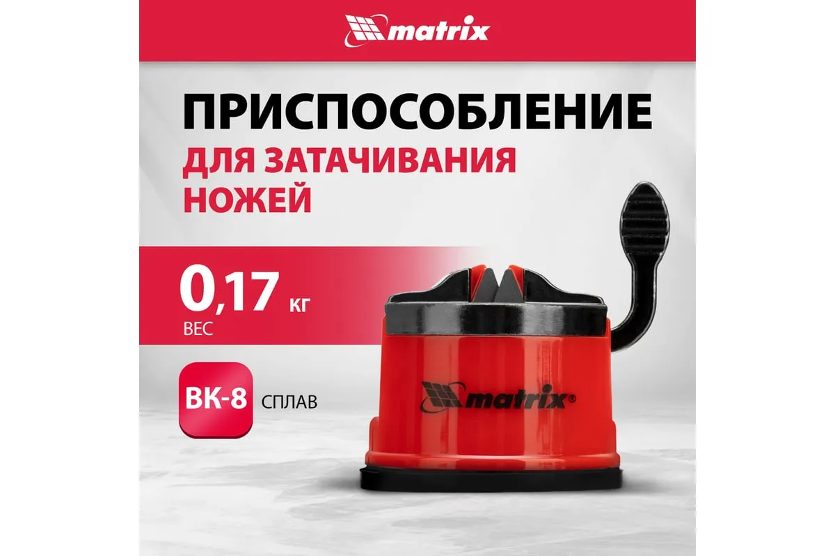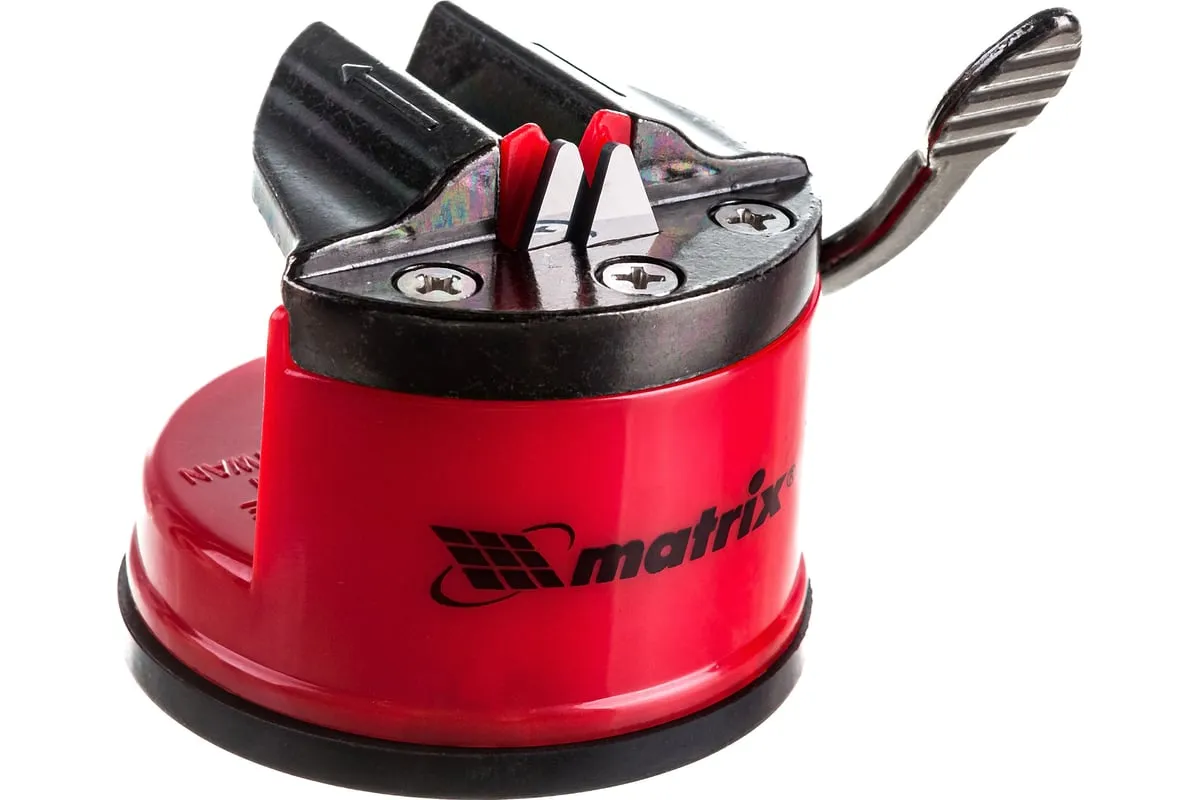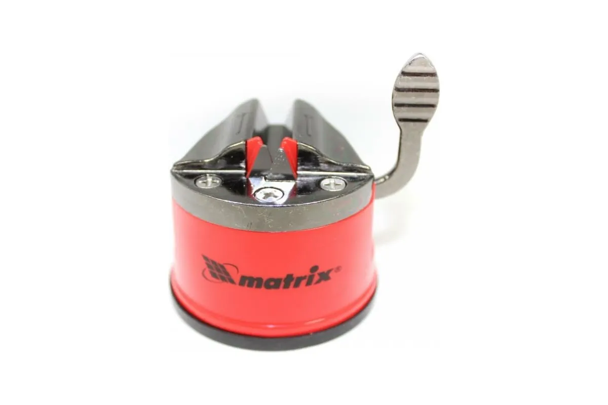 Приспособление для затачивания ножей любого типа Matrix 79104 с металлической направляющей и креплением на присоске быстро возвращает остроту затупившимся лезвиям ножей и садовых инструментов. Ножеточка будет полезна в быту — она не требует особых навыков, поэтому с ней справится каждая хозяйка.