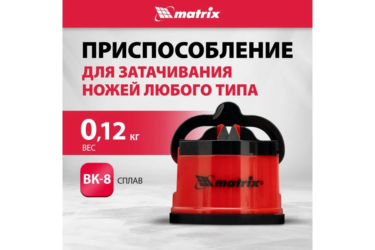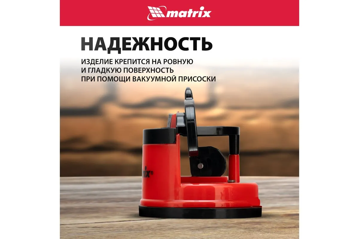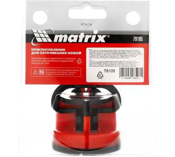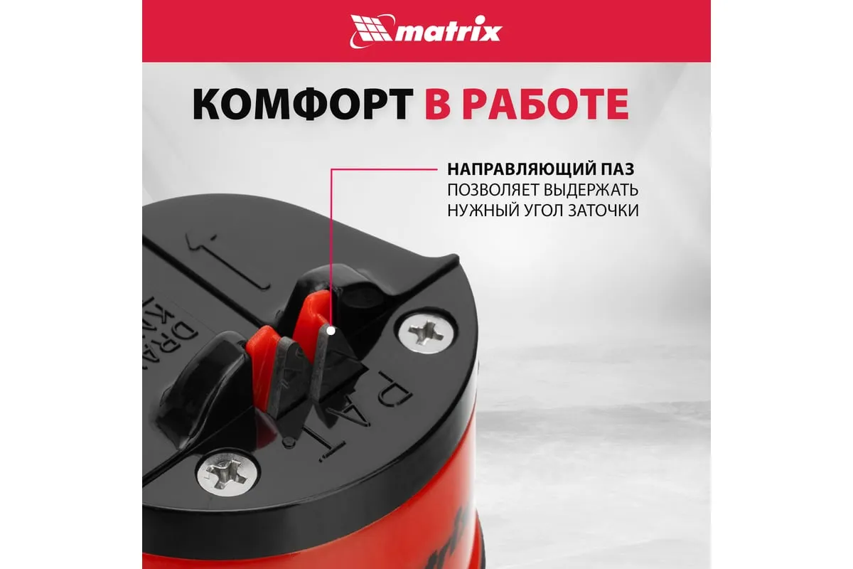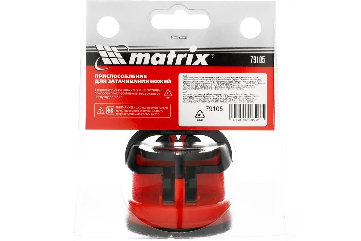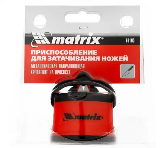 Приспособление для затачивания Matrix 79105 с креплением на присоске поможет быстро восстановить остроту ножей любого типа. В верхней части корпуса имеется направляющий паз, позволяющий выдержать нужный угол заточки. Ножеточка пригодится в домашнем хозяйстве.
