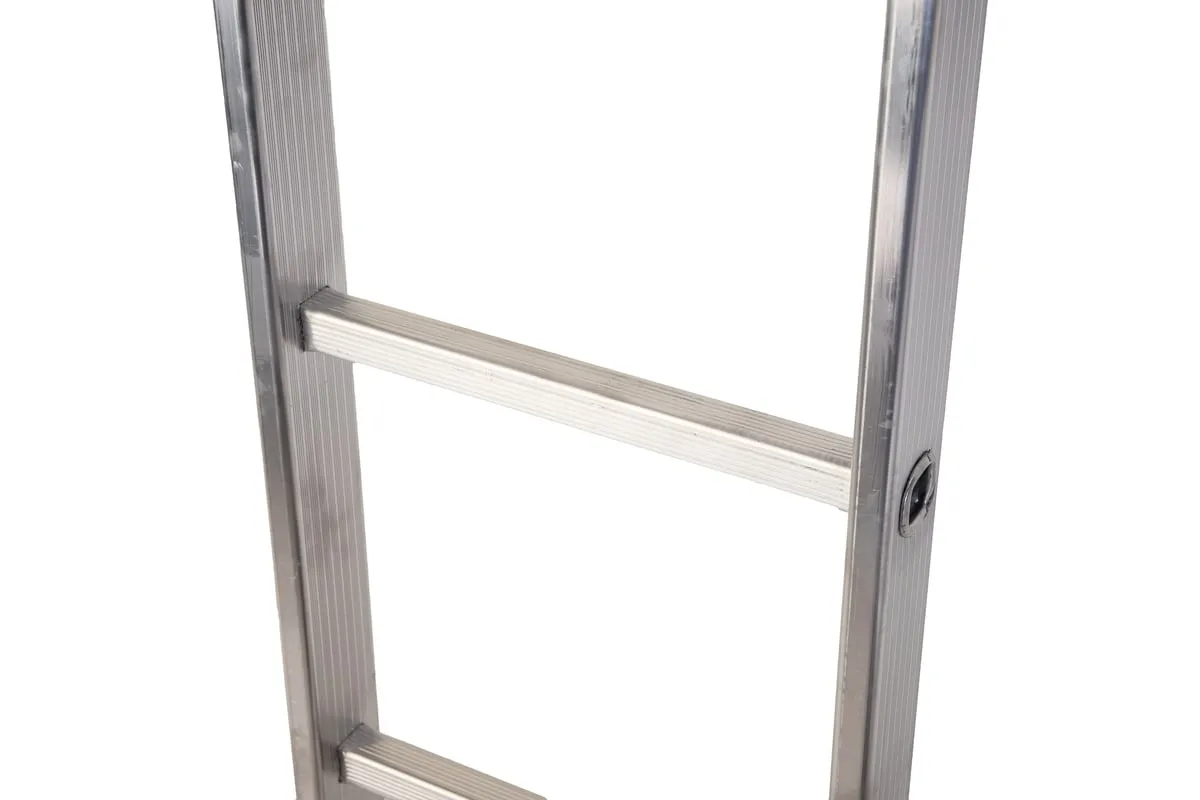 Приставная лестница СИБРТЕХ 9 ступеней 97829 служит для организации работ на высоте. Сфера использование широка и многогранна. Подходит для дома, сада, гаража, а так же коммунальной и строительной деятельности. При изготовлении использовался прессованный алюминиевый профиль. Этогарантирует изделию коррозионную стойкость и прочность. Лестница оснащена специальными заглушкам, которыеисключают скольжения по поверхности пола.
