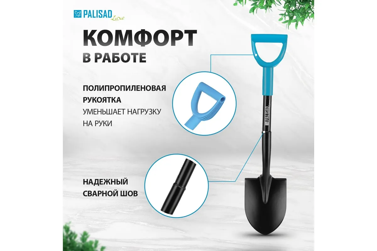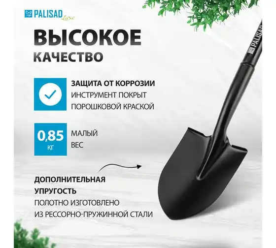 Профессиональная цельнометаллическая штыковая лопата PALISAD luxe 150x205x720 мм 61370 предназначена для работ с каменистой, глинистой и твердой почвой. Успешно справляется с решением поставленных задач благодаря заостренной форме полотна, позволяющей легко копать и перерезать корни. Инструмент пригодится на строительной площадке и придомовом участке при выполнении земляных работ.