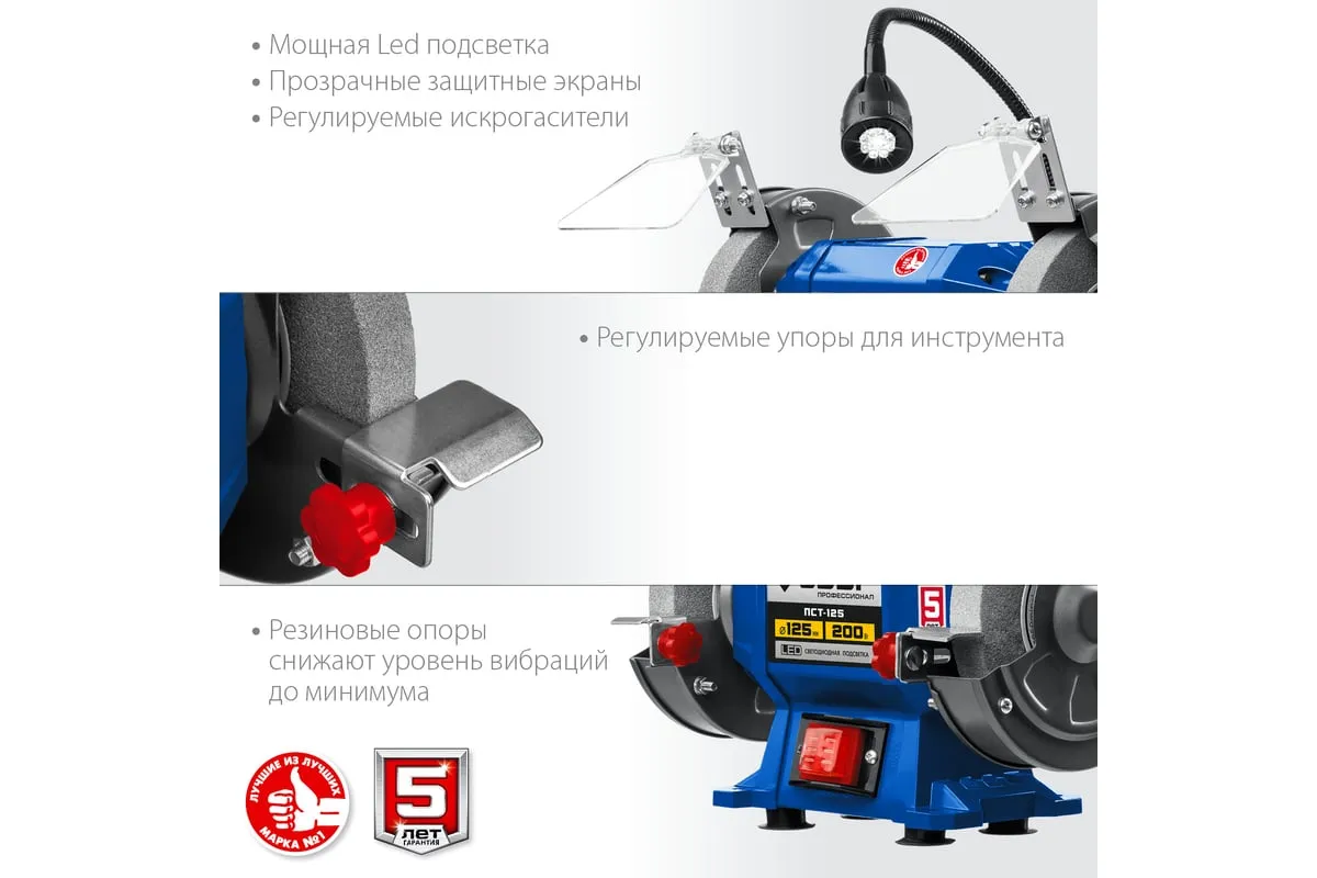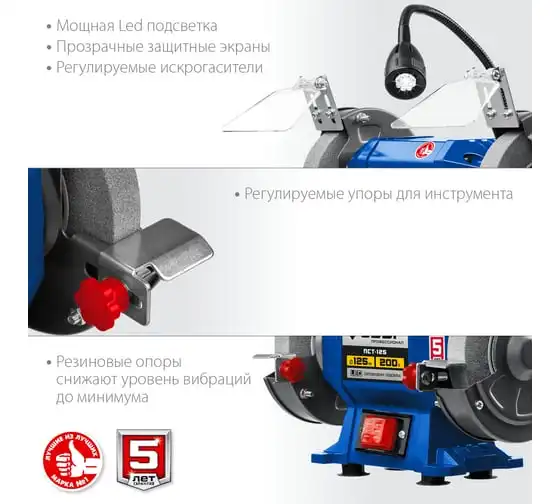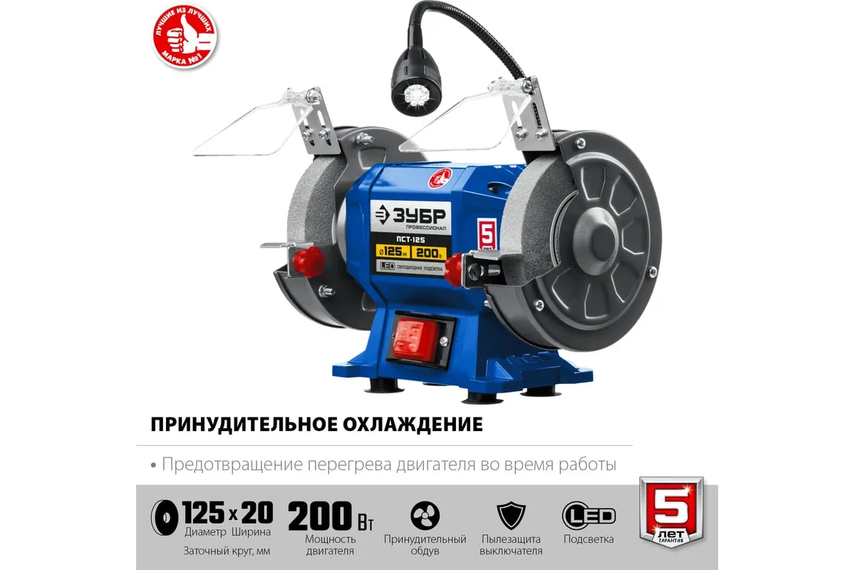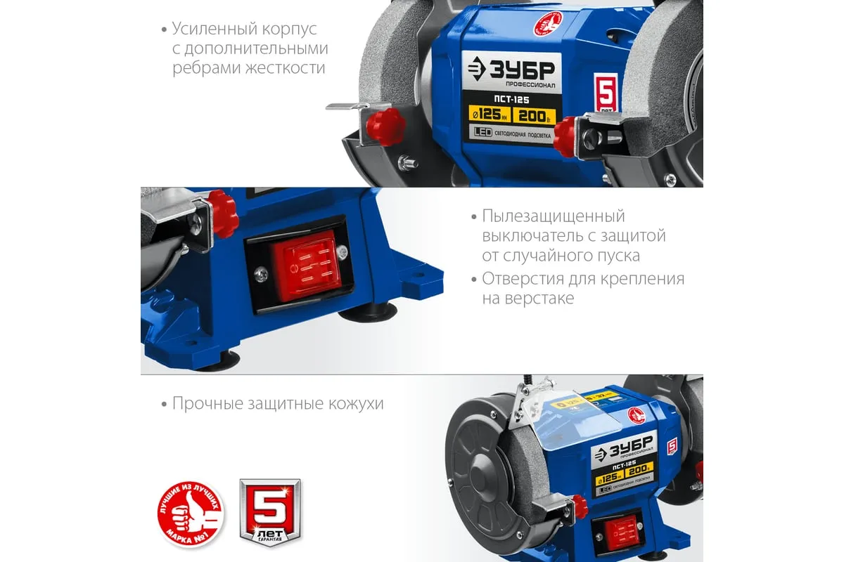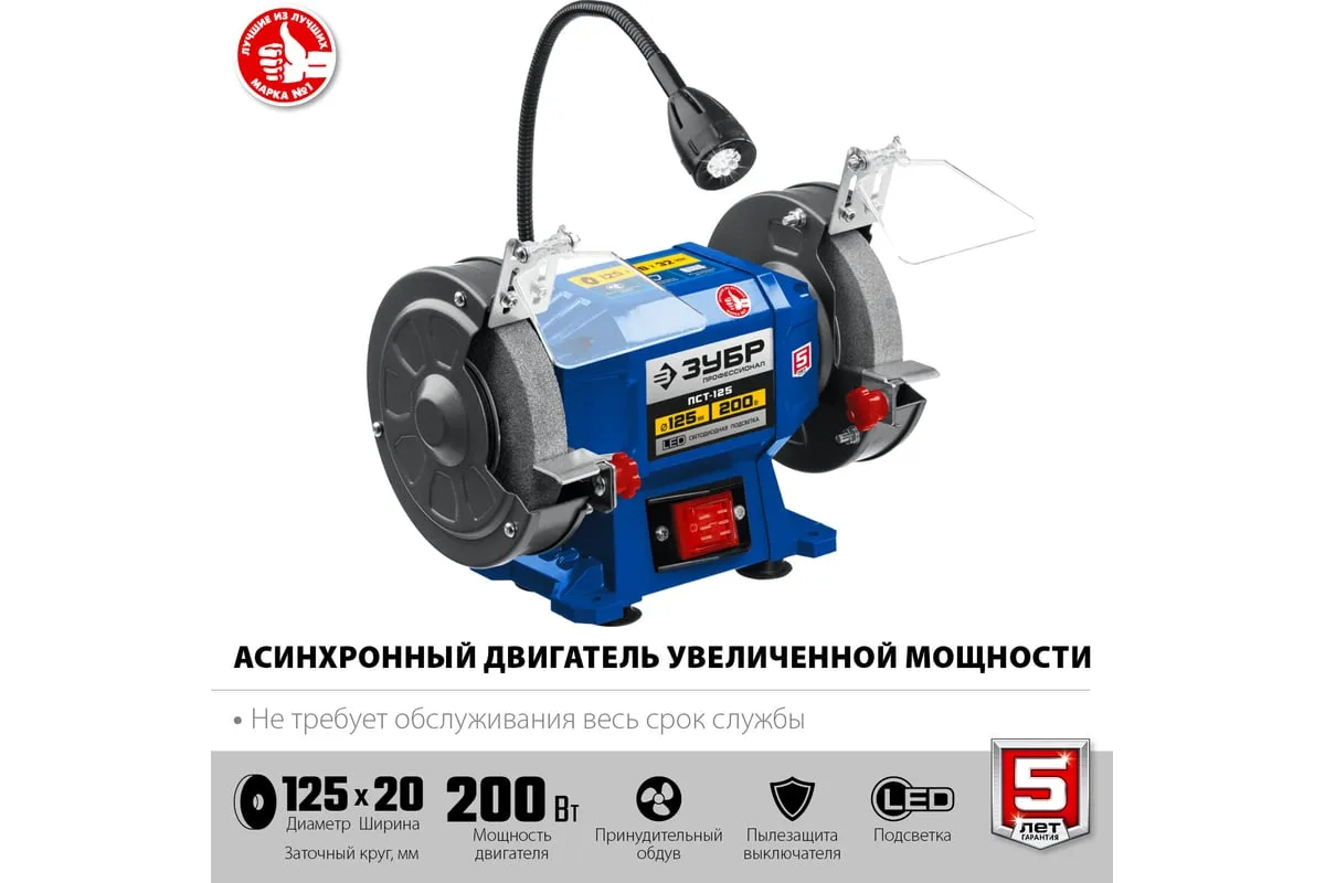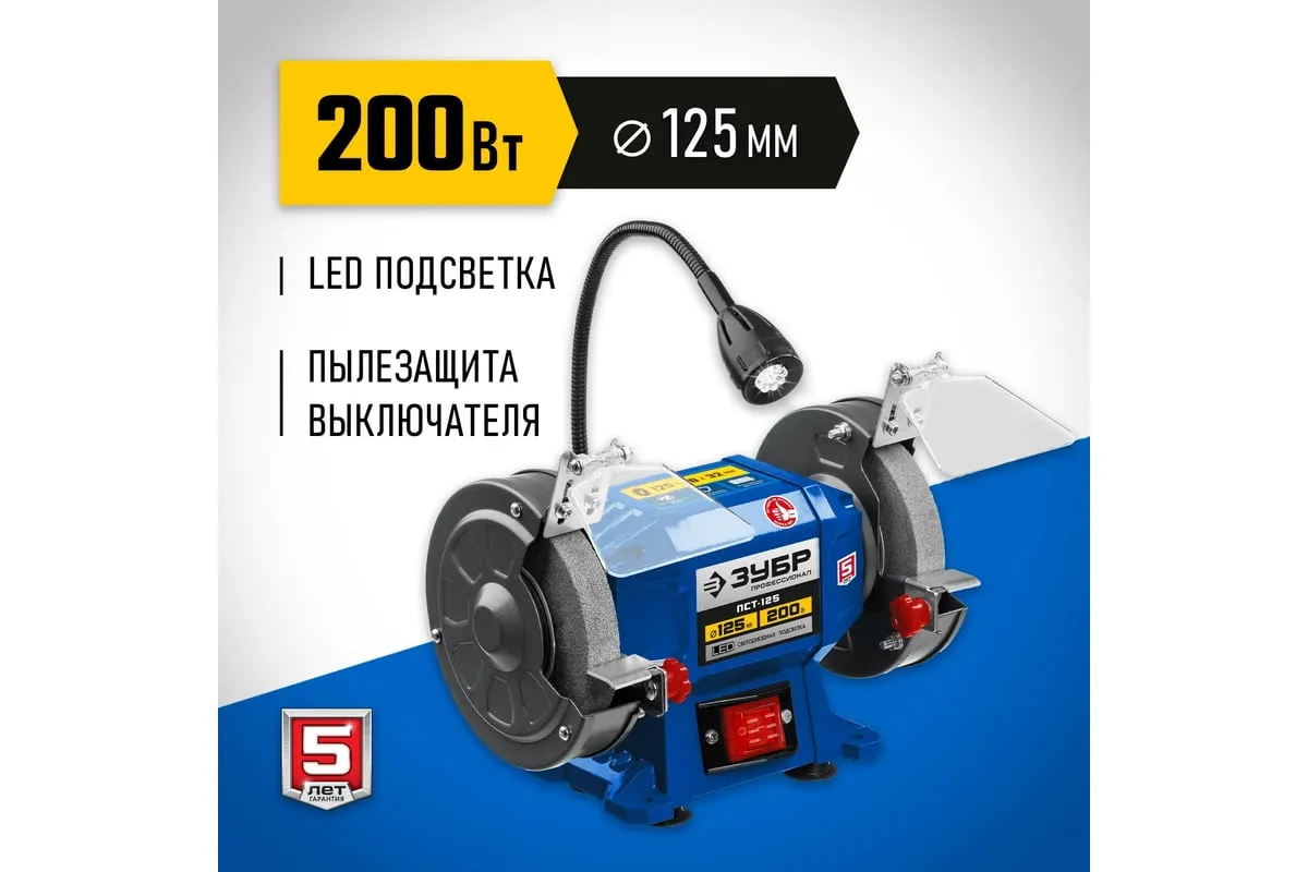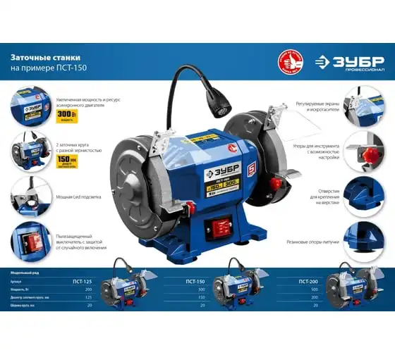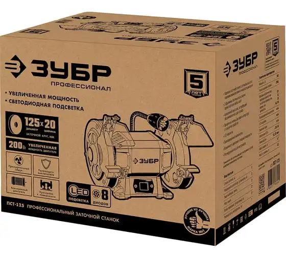 Профессиональный заточной станок ЗУБР d 125 мм ПСТ-125 подходит для эксплуатации в мастерской и на мелкосерийном производстве. Данная модель имеет большой ресурс двигателя. Станок отличается повышенной точностью установки заточных кругов и компактным корпусом. Станок предназначен для заточки, а также сухой шлифовки инструмента и металлических заготовок.