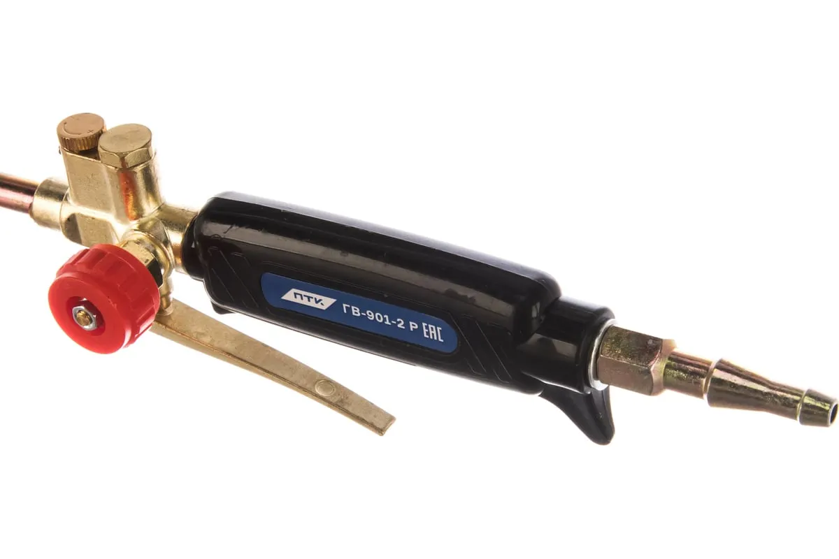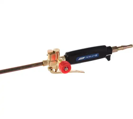 Горелка пропановая ГВ-901-2 Р предназначена для нагрева изделий и заготовок из черных и цветных металлов, оплавления битумных рулонных материалов, сушки литейных форм, обжига старой краски. В качестве горючего газа применяется пропан-бутановая смесь. На стволе горелки расположен рычаг подачи горючего газа.