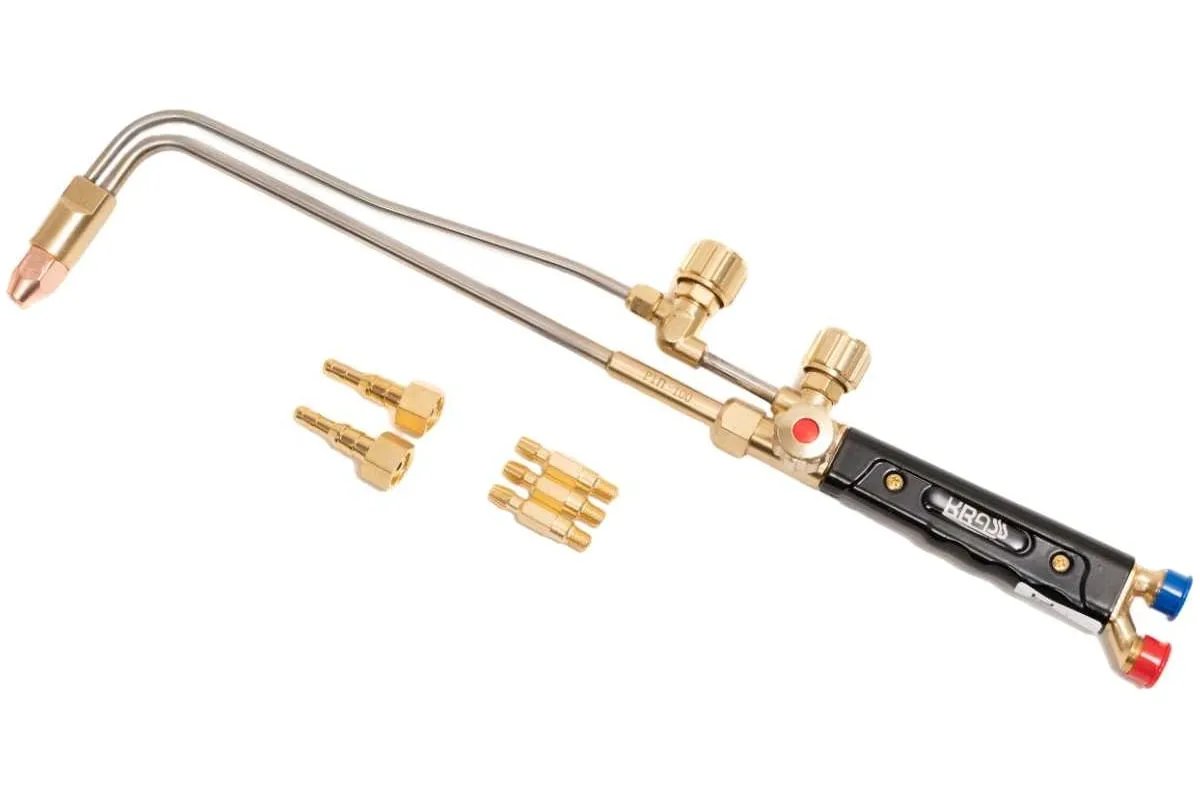 Пропановый резак KRASS Р1П-100 2117530 инжекторный предназначен для ручной газокислородной резки (раскроя) листового и сортового металла из низкоуглеродистых сталей толщиной до 100 мм. Основные параметры резаков соответствуют требованиям по ГОСТ5191-79.