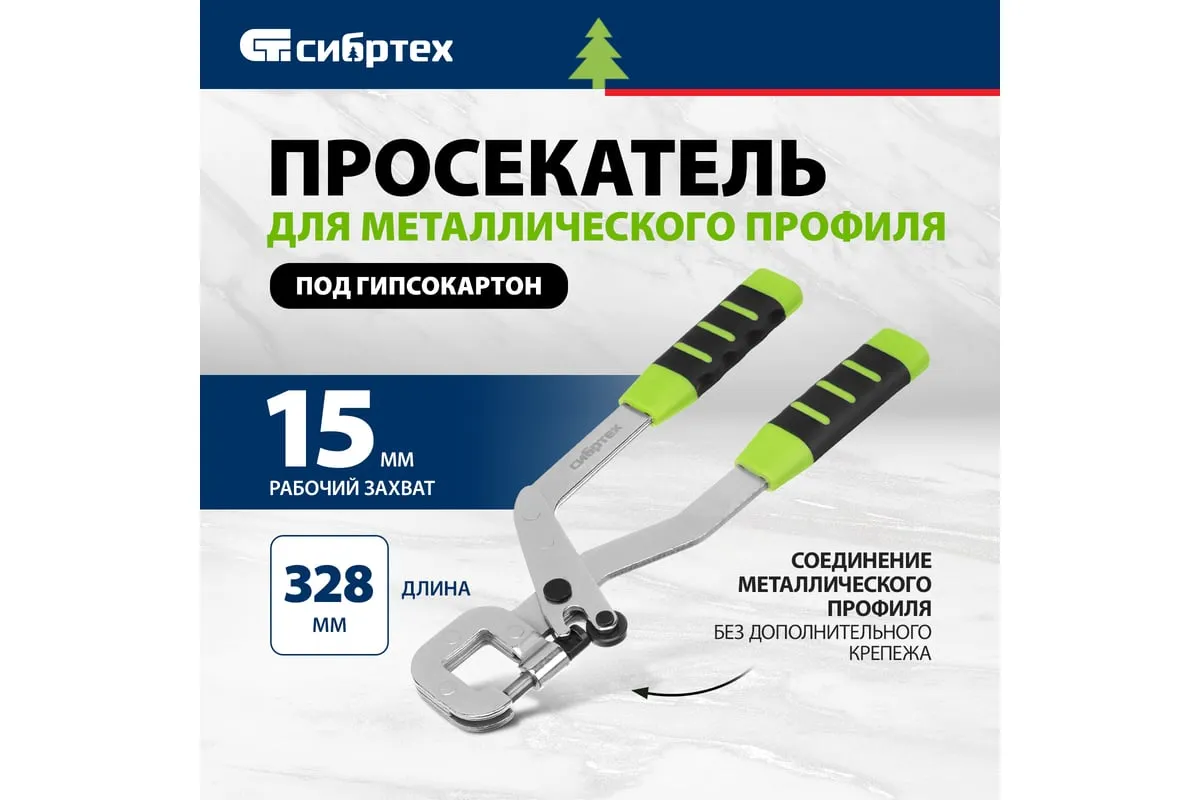 Просекатель Сибртех 87955 — инструмент для монтажа металлического профиля под гипсокартон. Пригодится для сооружения перегородок и подвесных потолков в небольших помещениях. Простой в эксплуатации инструмент будет полезен начинающему мастеру для самостоятельного проведения ремонта в квартире или на даче.