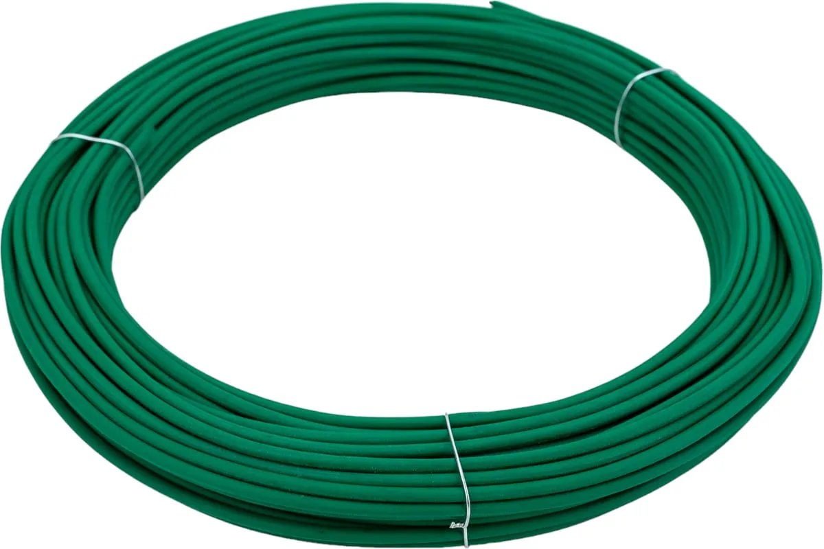Зеленая проволока для подвязки Сибртех 64380, стальная в ПВХ, с внутренним и внешним диаметром 1,6 и 3,0 мм соответственно, будет полезна в дачном хозяйстве. Ею удобно подвязывать растения или создавать шпалерные системы. Изделие оптимально подходит для удерживания тяжелых стеблей.