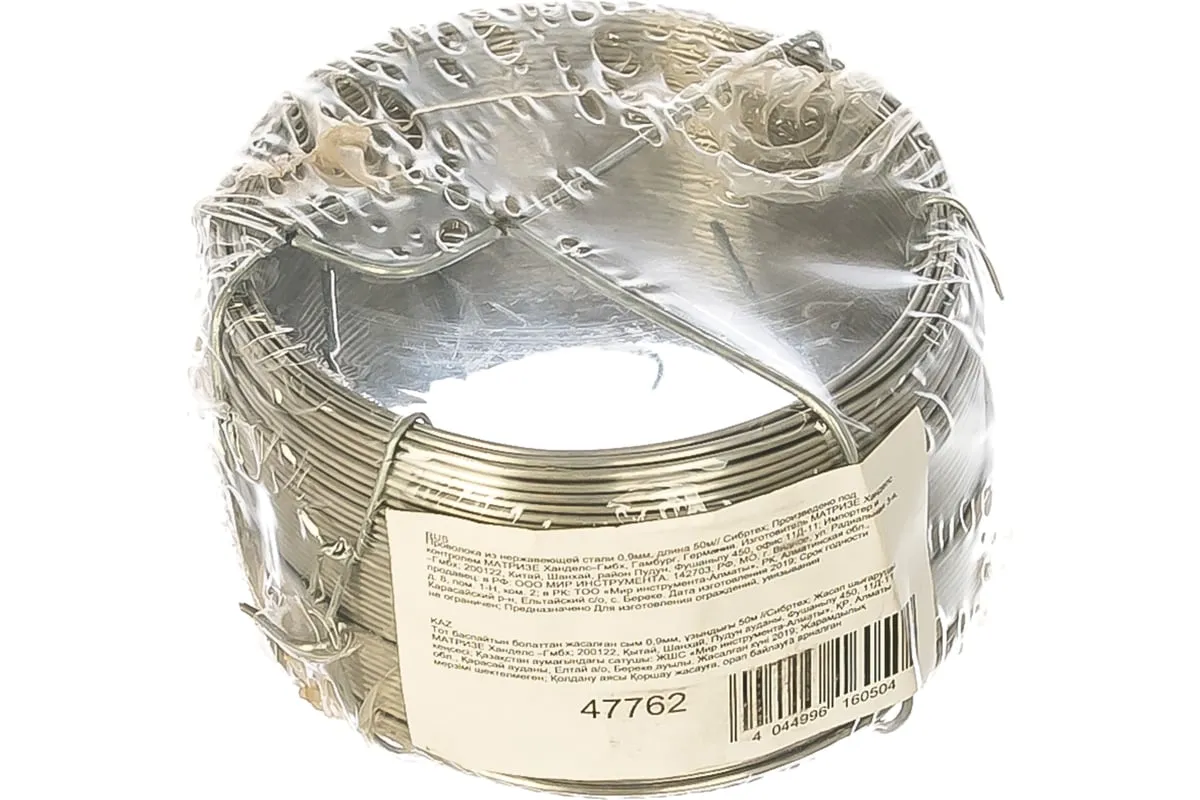 Проволока из нержавеющей стали Сибртех 47762 диаметром 0,9 мм и длиной 50 м имеет гладкую и блестящую текстуру, поэтому оптимально подходит для рукоделия. Также пригодится в быту для увязывания и фиксации предметов, изготовления сеток и рамок и т.д.