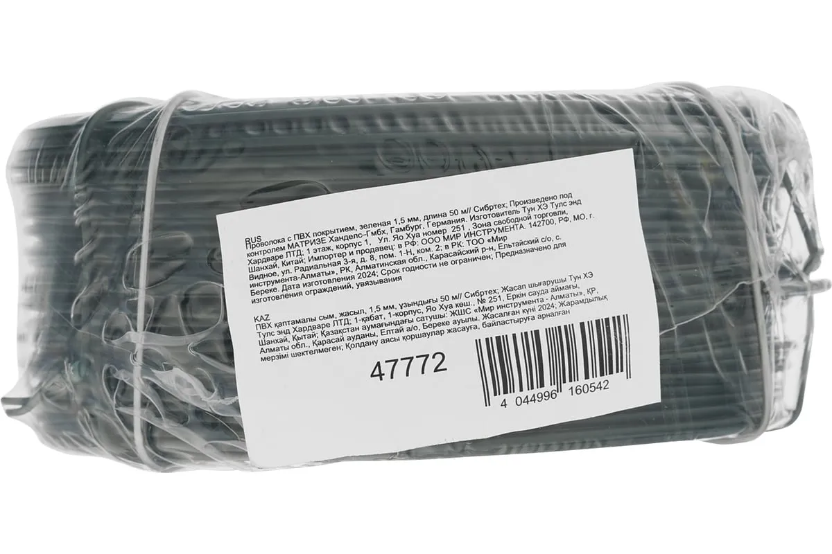Зеленая проволока с ПВХ покрытием Сибртех 47772 диаметром 1,5 мм и длиной 50 м пригодится дачникам при проведении садово-огородных работ. С ее помощью удобно фиксировать растения, подвязывать сетки и шпалеры. Изделие также подходит для увязывания и фиксации различных предметов.