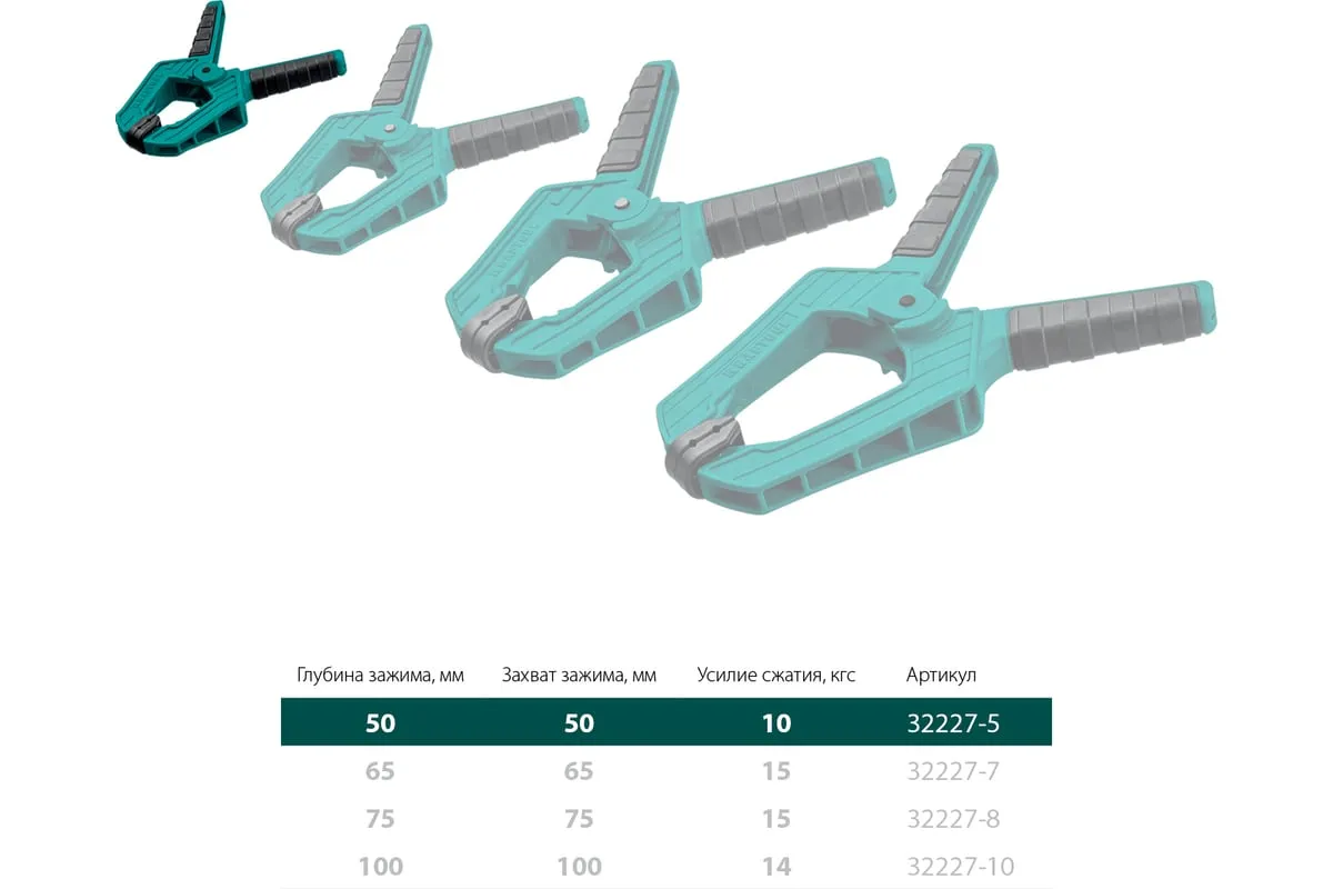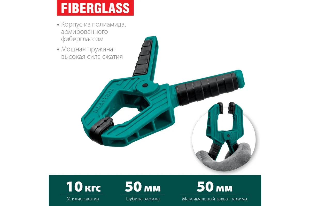 KRAFTOOL SC-5 струбцина пружинная 50/50 мм 32227-5 - мощный и удобный инструмент для тех случаев, когда нужна дополнительная рука. Позволяет регулировать силу сжатия и обеспечивает быструю, комфортную работу в мастерской, в гараже или в доме.