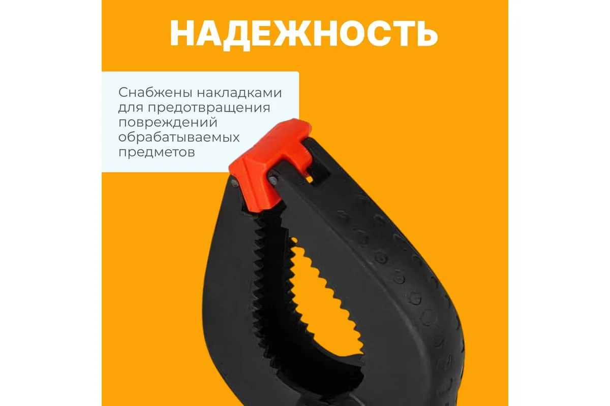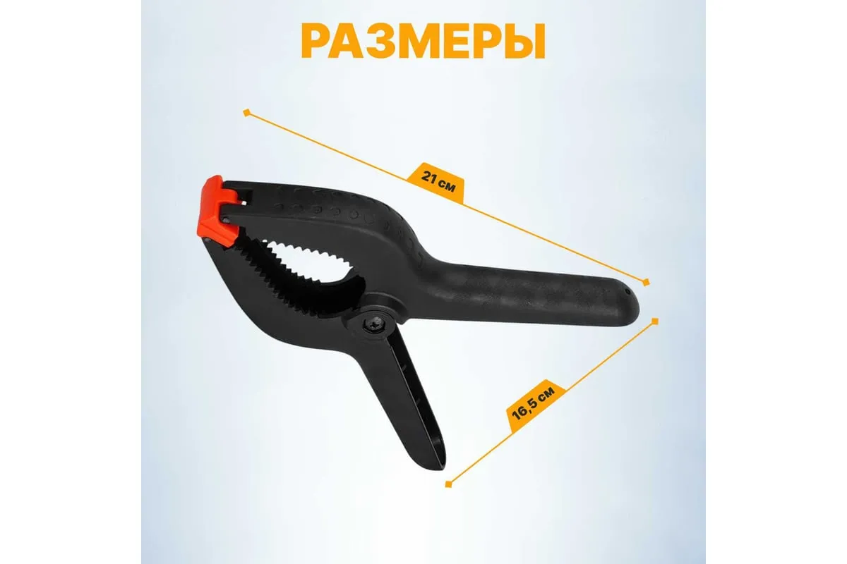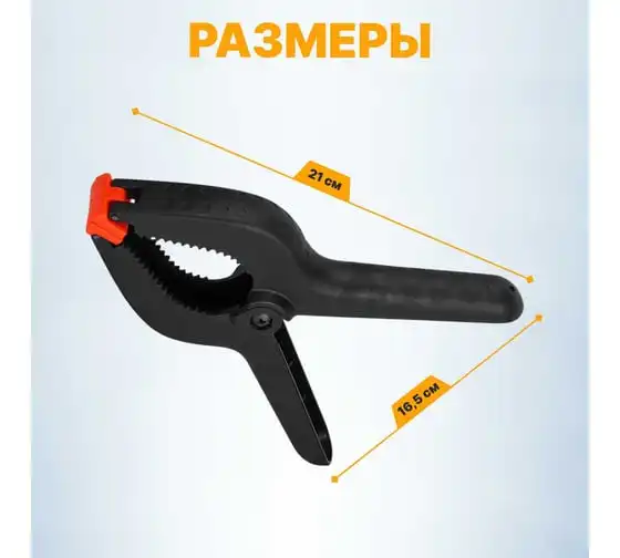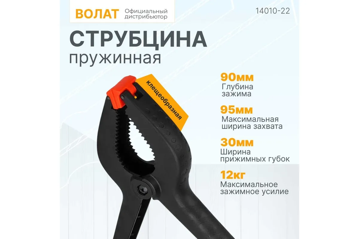 Пружинная струбцина ВОЛАТ 225 мм 14010-22 предназначена для закрепления деталей при склеивании и сборке изделий. Струбцину можно использовать для зажима предметов и деталей из стекла или керамики - мягкие накладки не повреждают деталь. Ударопрочный пластик, из которого выполнена струбцина, обладает высокой прочностью и надежностью.