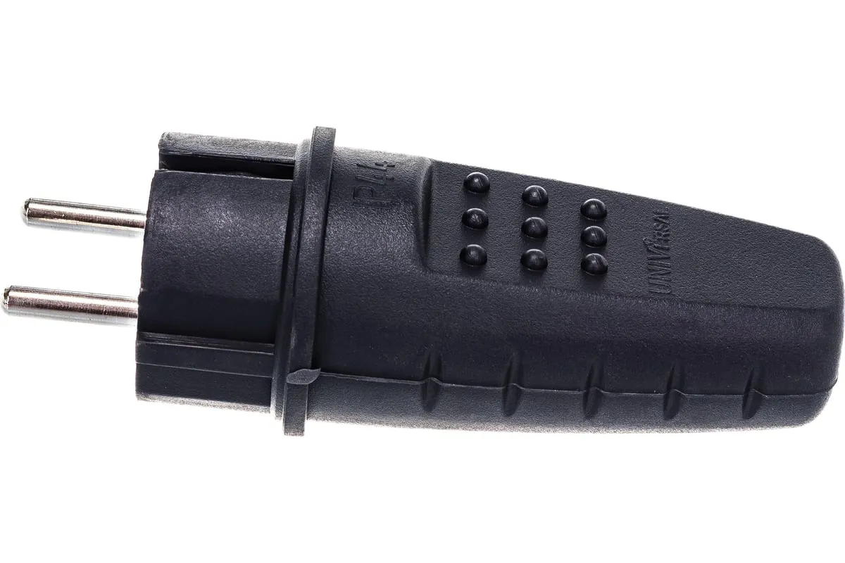Прямая однофазная вилка, каучук UNIVersal 602227 - прочное и надежное электротехническое изделие, которое служит для соединения с электрическим проводом и создания удлинителя или питающего шнура к какому-либо электроприбору.
