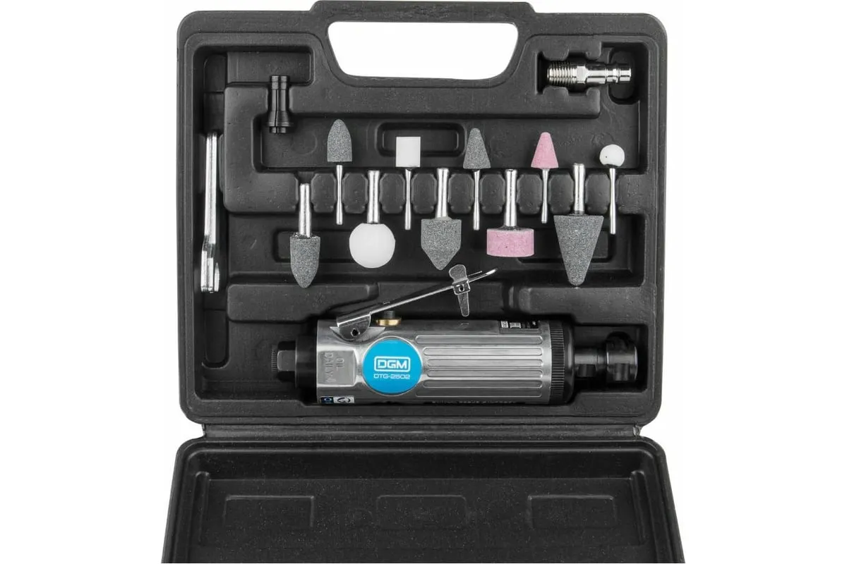 Прямая пневмошлифмашина DGM DTG-2502 станет незаменимым помощником в вашей работе. Имеет алюминиевый корпус. В комплекте чемодан для хранения.