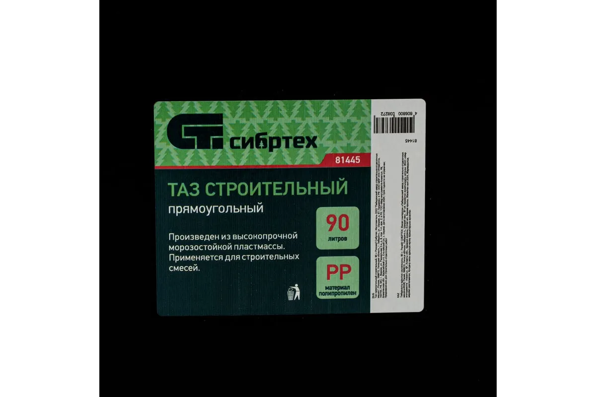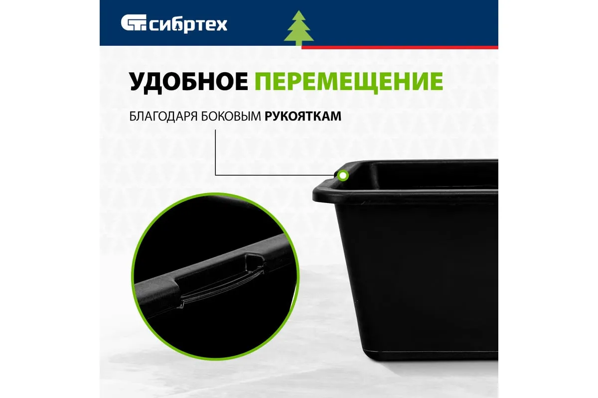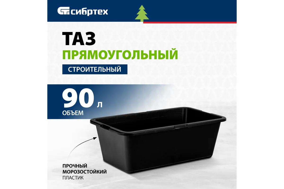 Прямоугольный строительный таз 90 л СИБРТЕХ 81445 имеет небольшой вес благодаря изготовлению из пластмассы. Прямоугольная форма облегчает процесс хранения модели. Материал емкости отличается устойчивостью к воздействию отрицательных температур.