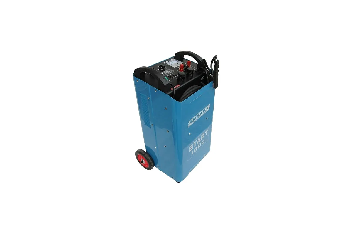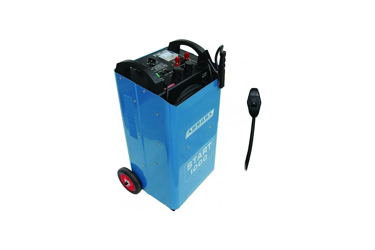 Пуско-зарядное устройство Aurora START 1000 ДУ 19216 используется для зарядки свинцово-кислотных аккумуляторов. Наличие двух удобных рукояток положительно влияет на передвижение устройства. Конструкция в целом удобна и практична. Для проводов имеется отдельный карман, который имеет достаточный объем. Удобная панель управления в значительной степени упрощает работу: элементы сгруппированы, а стрелочный индикатор показывает текущую силу тока. В комплекте поставляется пульт дистанционного управления, который производит запуск оборудования на расстоянии до семи метров от аккумулятора. Во избежание перезарядки собственного аккумулятора, ПЗУ оснащено специальным таймером.