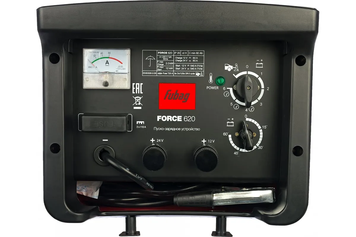 Пуско-зарядное устройство Fubag FORCE 620 предназначен для помощи в запуске двигателей с севшими аккумуляторами, а также для быстрой и медленной зарядки автомобильных аккумуляторов. Приспособление не требует специального хранения и прослужит долгие годы. Специальные зажимы обеспечивают быстрое подключение и надежность контакта. В конструкции устройства предусмотрен специальный карман для хранения кабелей и зажимов. Простое управление, функциональный корпус выгодно выделяют данную модель на фоне аналогов.
