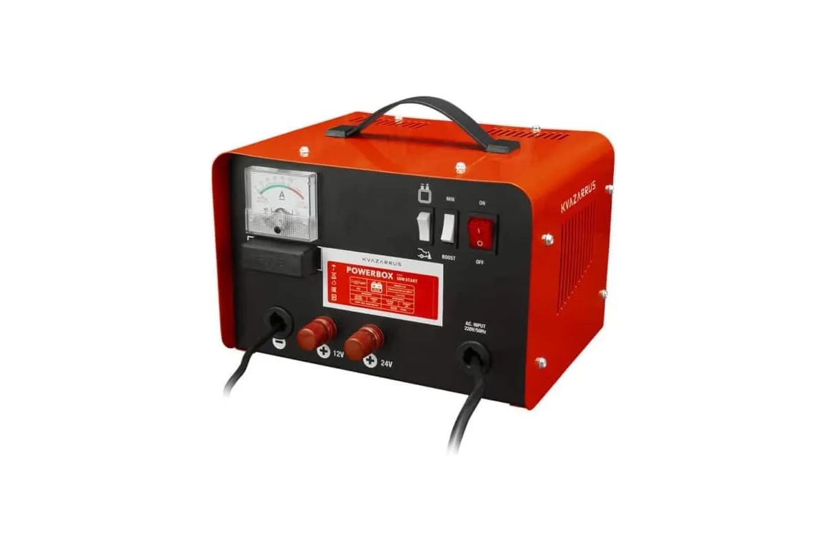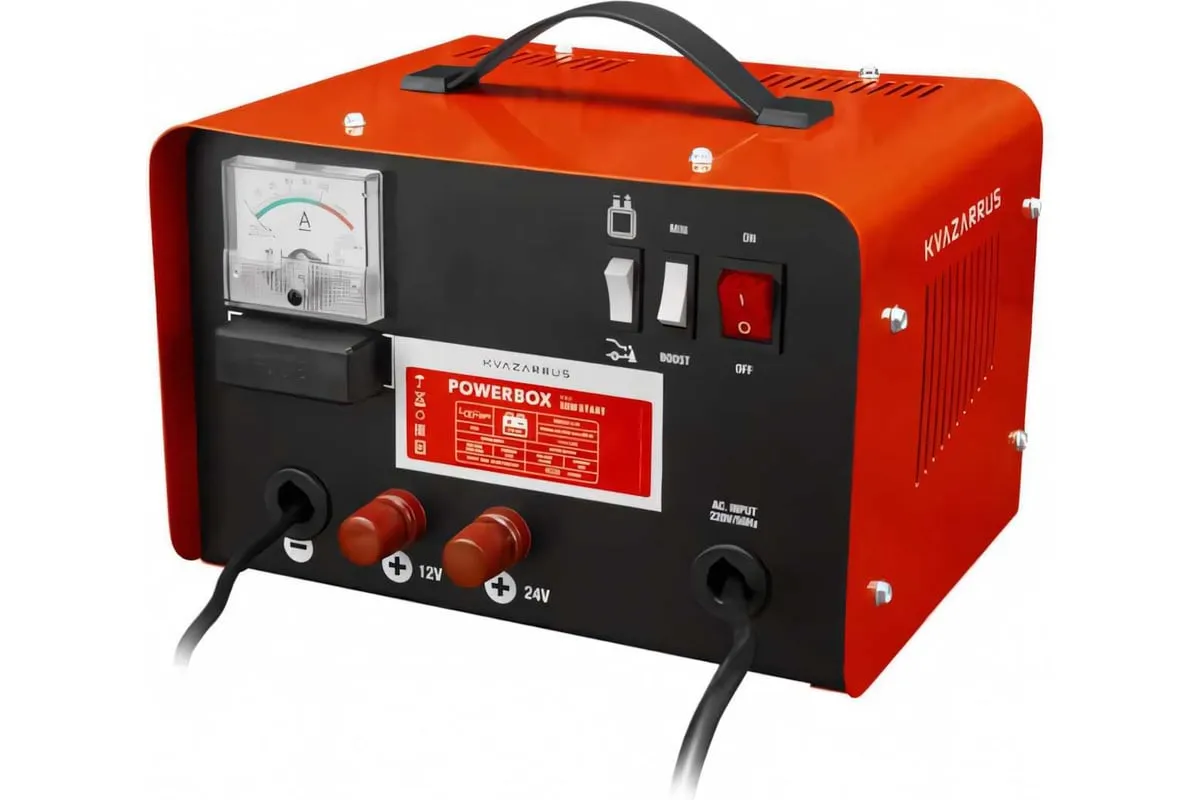 Пуско-зарядное устройство KVAZARRUS PowerBox 50M START 6497 предназначено для зарядки свинцово-кислотных аккумуляторных батарей, которые используются на мотоциклах, моторных лодках и т.д.