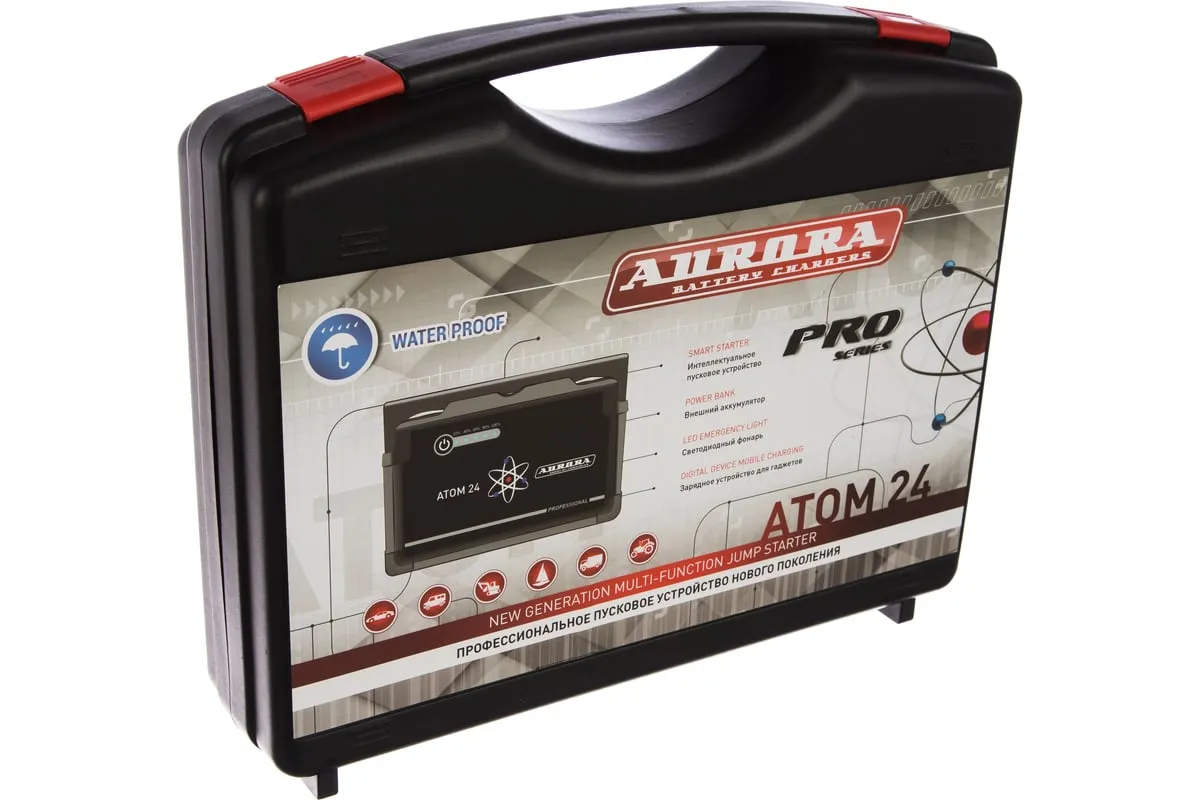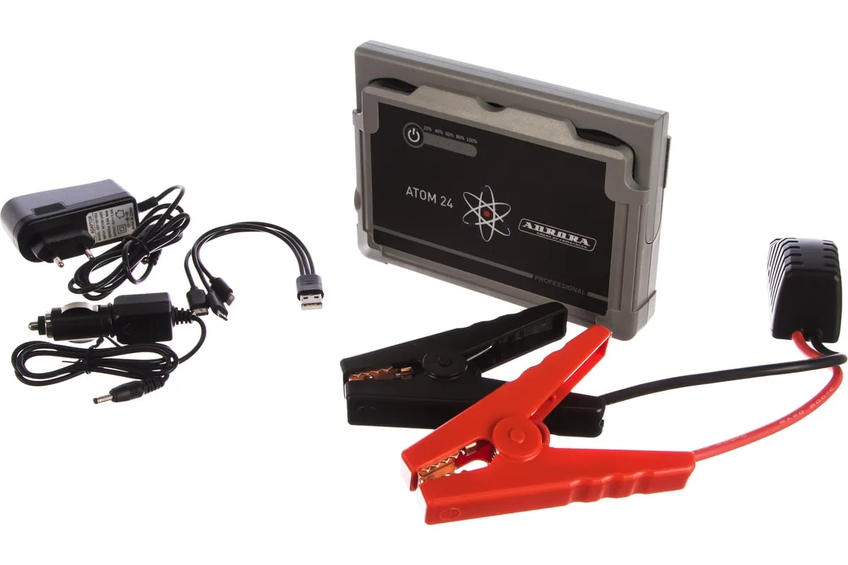 ATOM 24 предназначен для запуска двигателей мотоциклов, легковых машин, генераторов и прочих устройств для питания которых используется 12В аккумуляторы. Мощности устройства хватит для запуска практически любых бензиновых и дизельных двигателей. С помощью АТОМ 24 можно заряжать и питать мобильные телефоны и планшеты, энергоёмкое автомобильное оборудование (компрессоры, автохолодильники и т.д.). Благодаря малому весу и компактным габаритам ATOM 24 можно использовать в походе, в командировке или на рыбалке. Все выходы устройства защищены резиновыми заглушками. Класс влагозащищенности - IP 64.