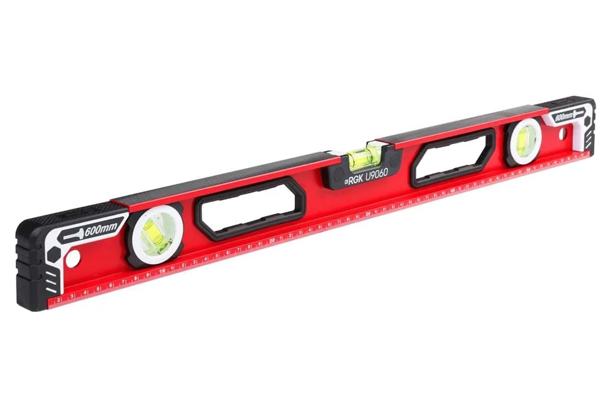 Пузырьковый строительный уровень RGK U9060 обеспечивает точность 1 мм/м.
