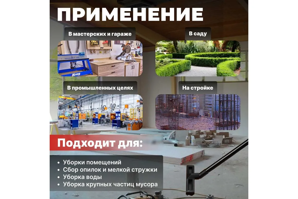 В базовую комплектацию входит шланг 2 м, а также электрический провод 4.5 м, для большего удобства в работе. Надежный и мощный двигатель 1400 Вт.