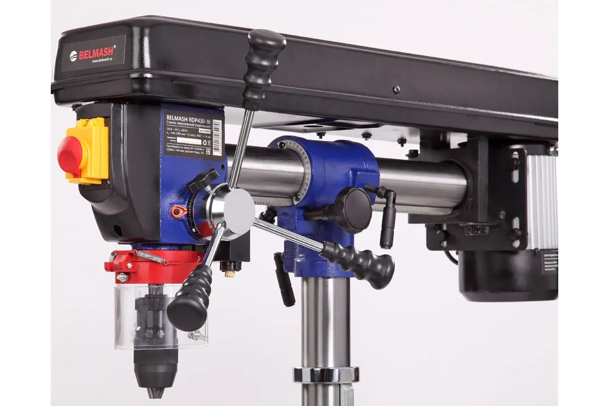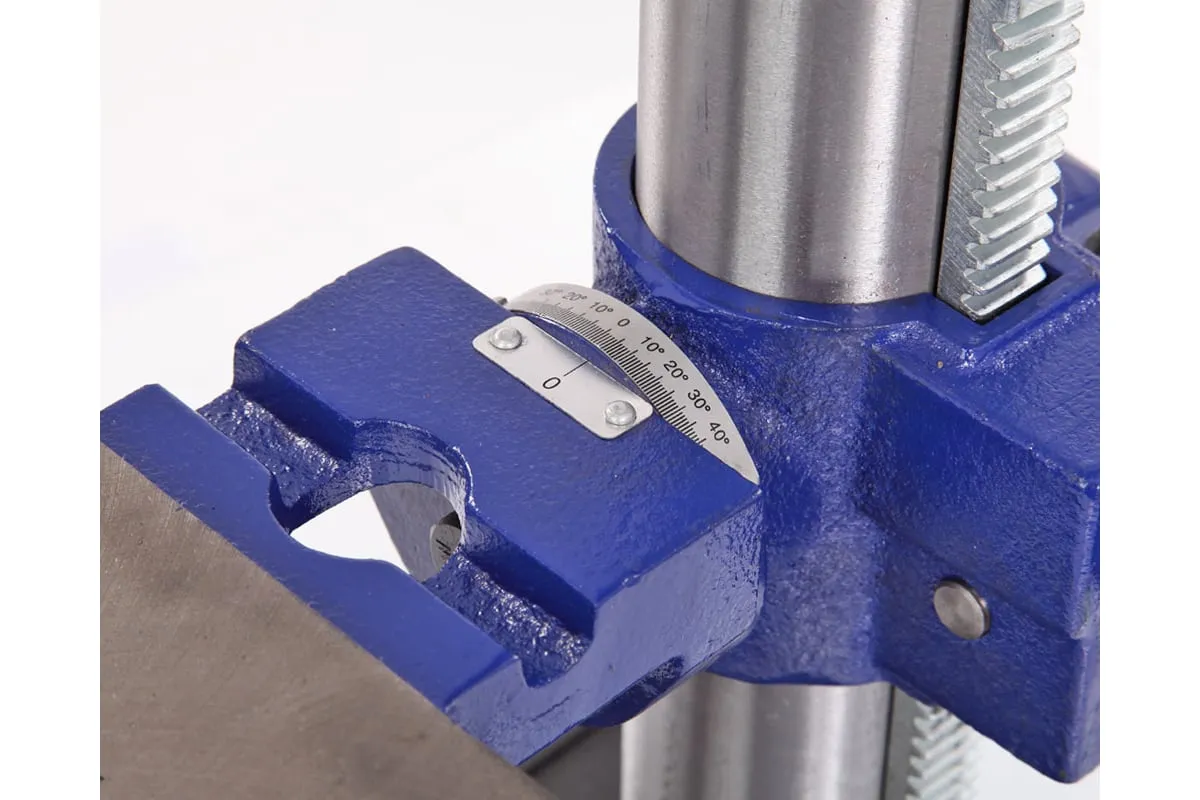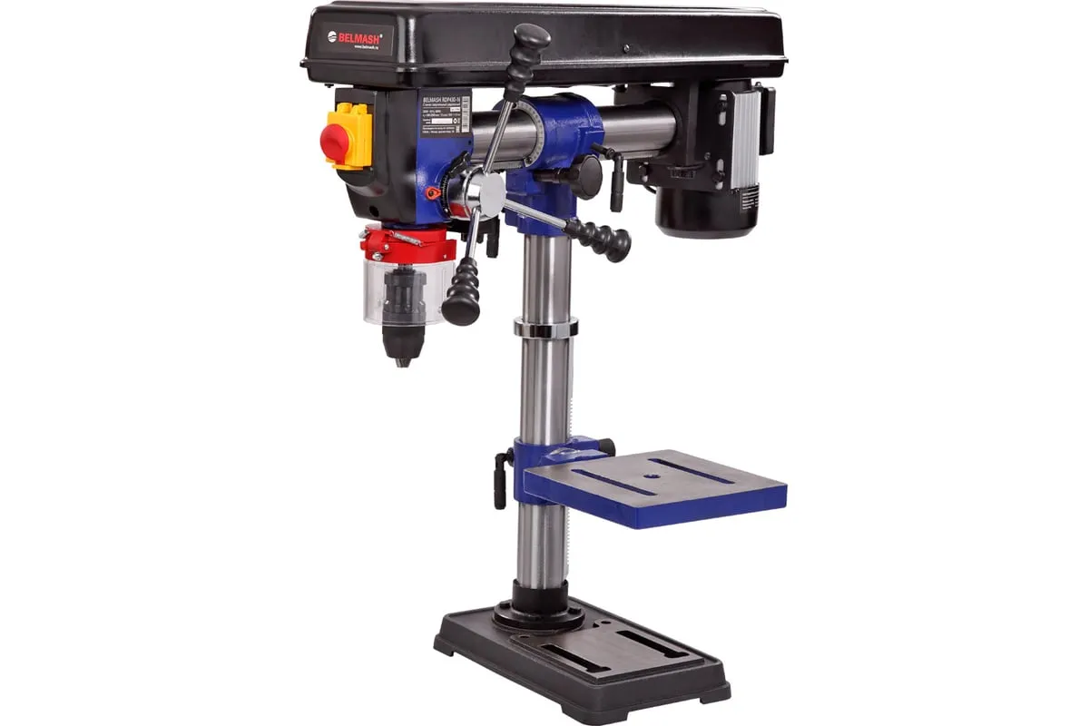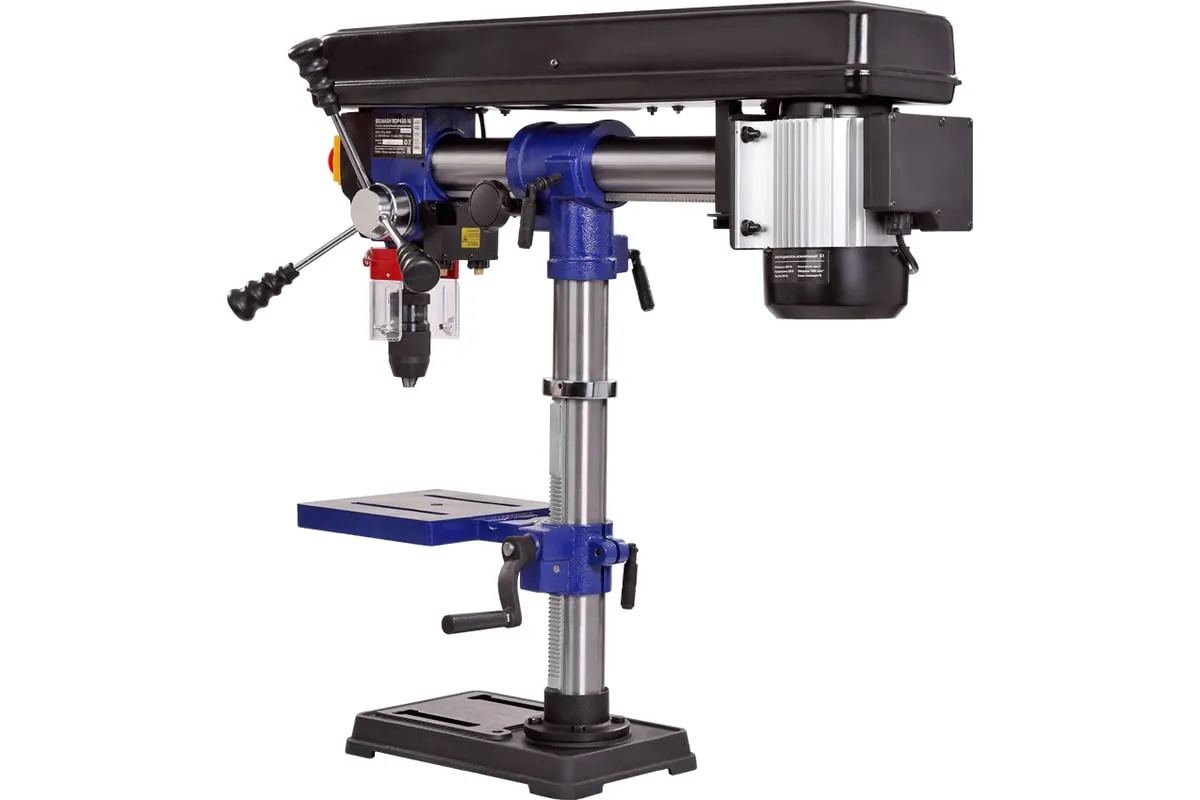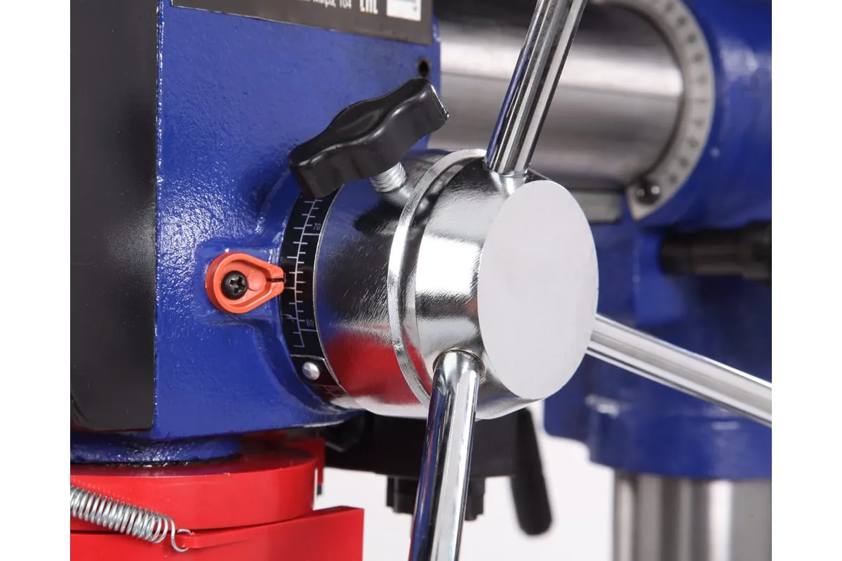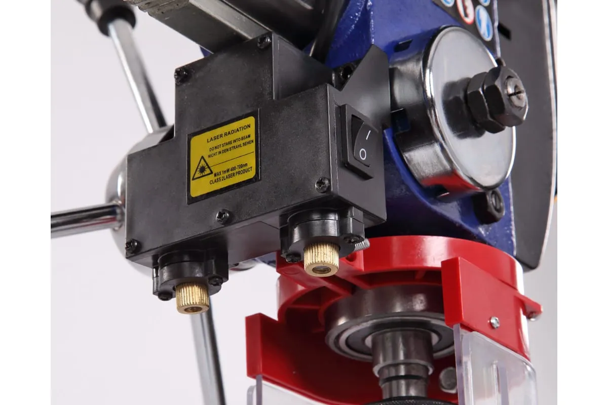 Станок имеет средний размер, исполнение настольное, высота в сборе – 810 мм. Максимальное расстояние между шпинделем и столом – 355 мм. Заготовку можно крепить как к рабочему столу, так и к основанию, все зависит от ее размера. В комплекте предусмотрены тиски. Для их крепления есть по два паза на рабочем столе и на основании.