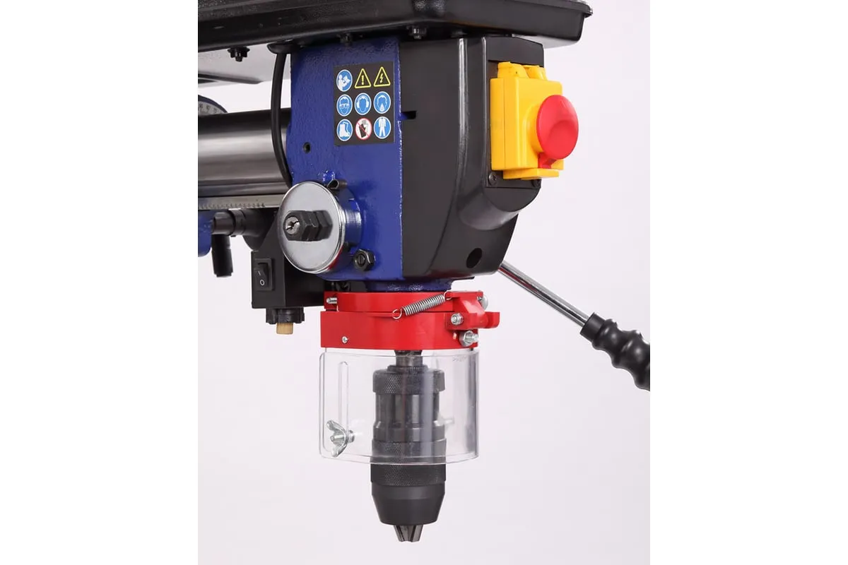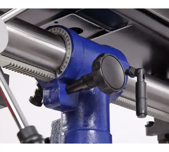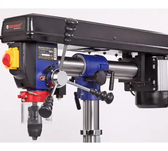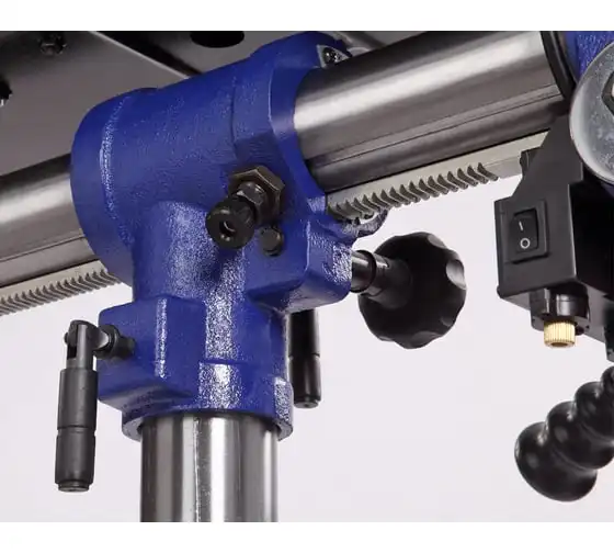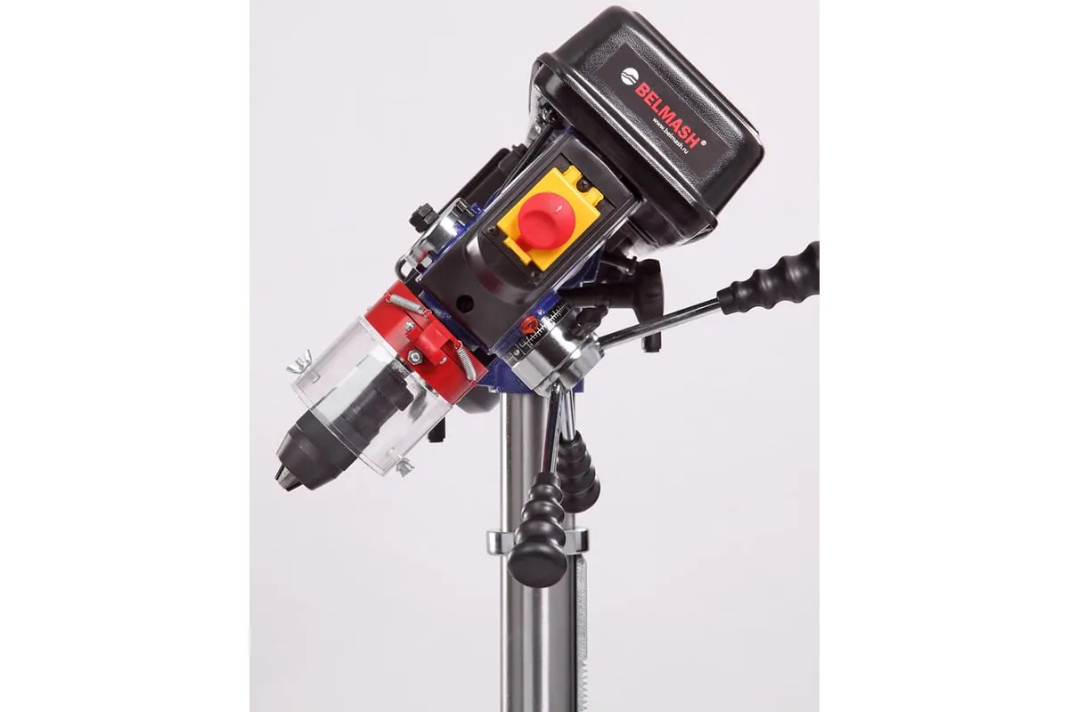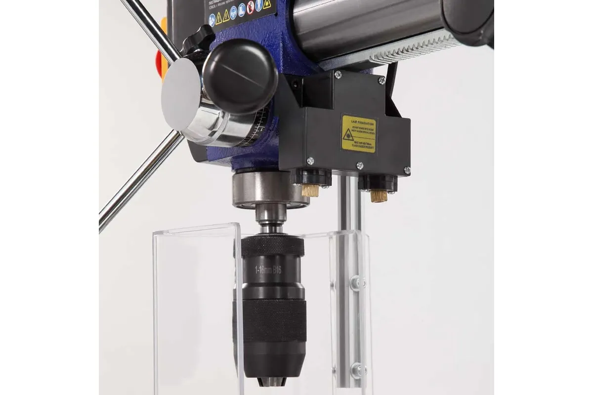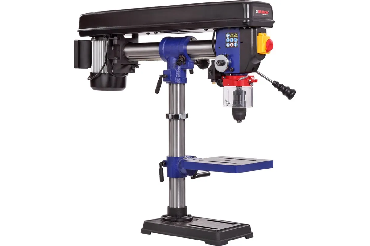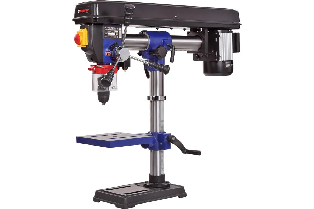Станок имеет средний размер, исполнение настольное, высота в сборе – 810 мм. Максимальное расстояние между шпинделем и столом – 355 мм. Заготовку можно крепить как к рабочему столу, так и к основанию, все зависит от ее размера. В комплекте предусмотрены тиски. Для их крепления есть по два паза на рабочем столе и на основании.