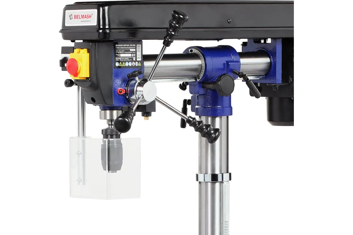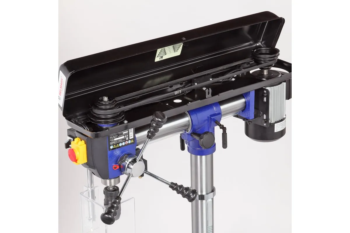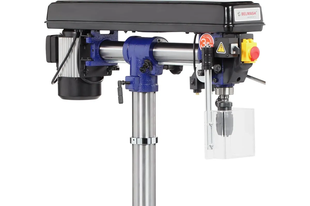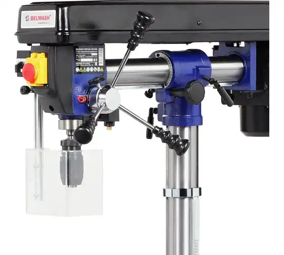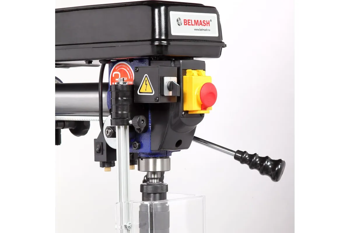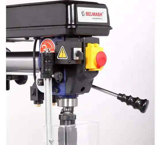 Станок один из самых высоких в линейке сверлильного оборудования BELMASH – 1630 мм, подходит для обработки заготовок большой толщины. Максимальное расстояние между шпинделем и столом – 740 мм, между шпинделем и основанием - 1300 мм.