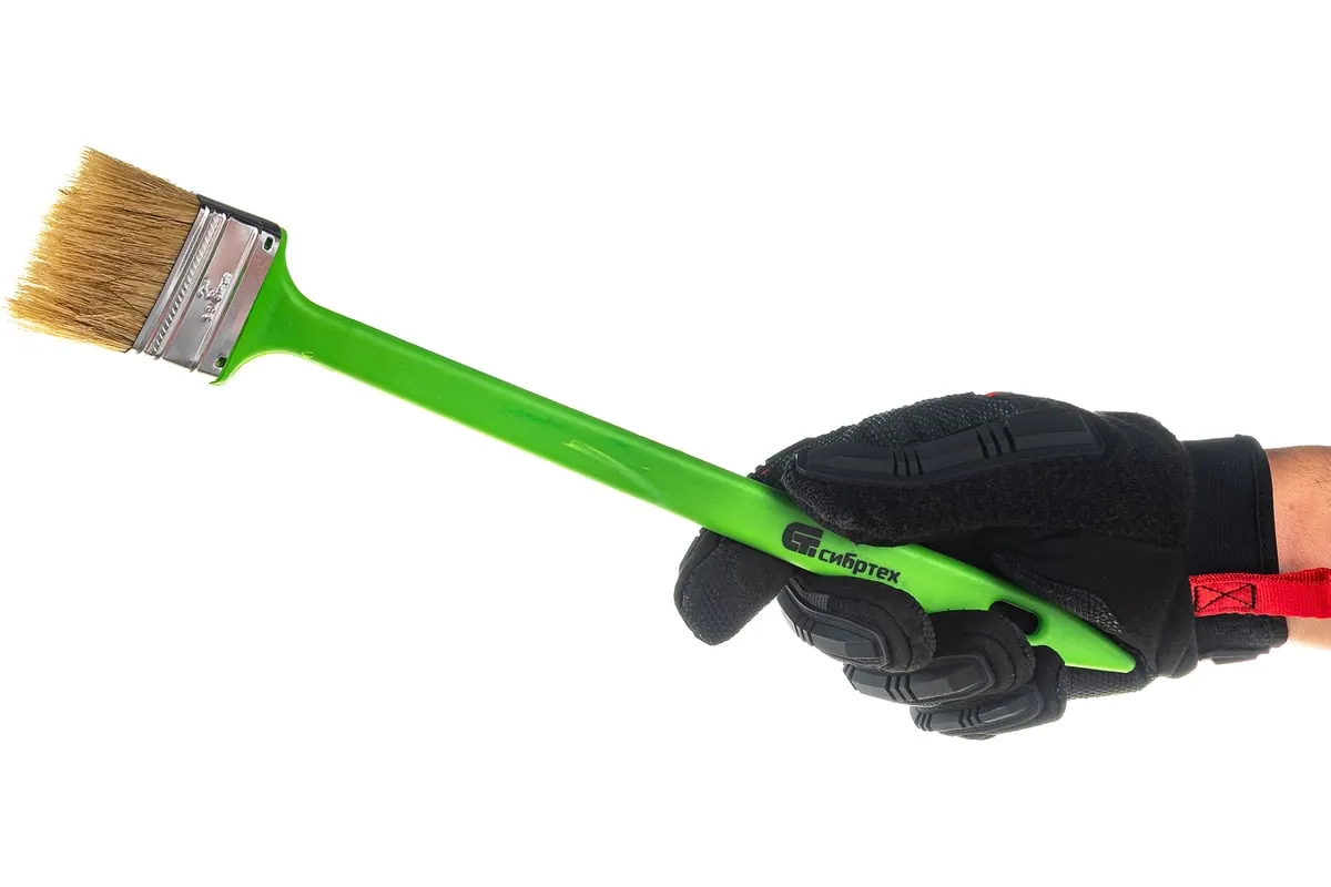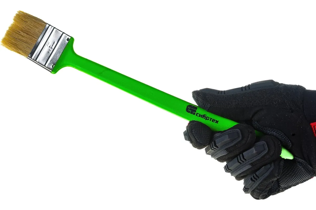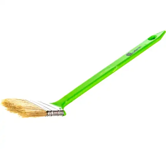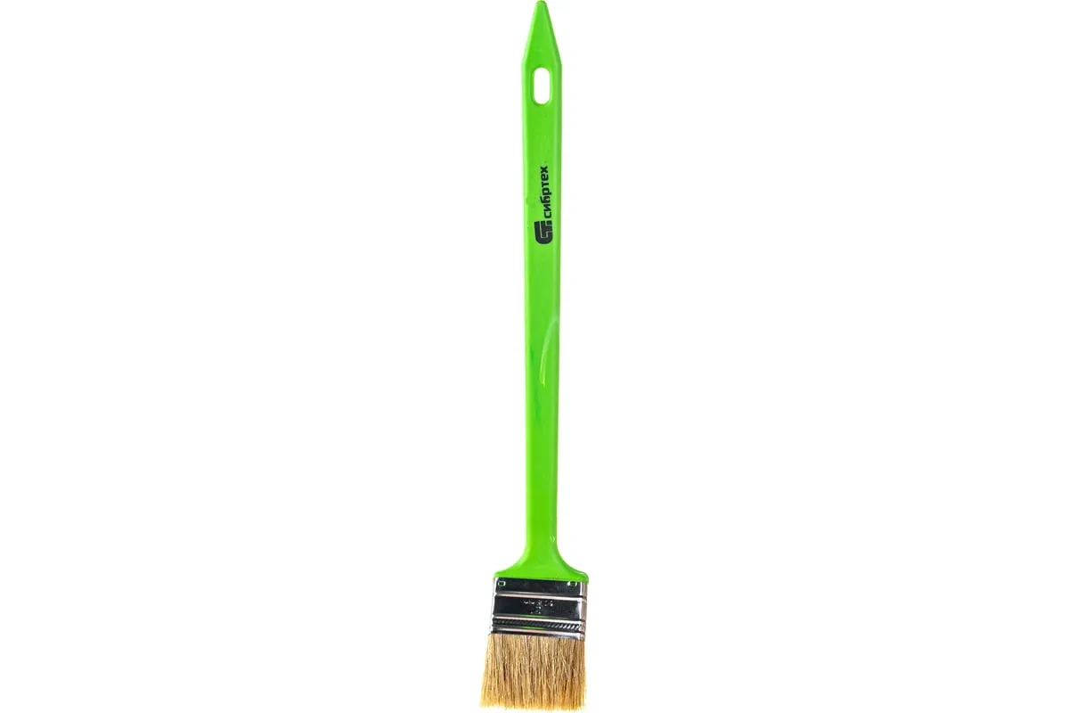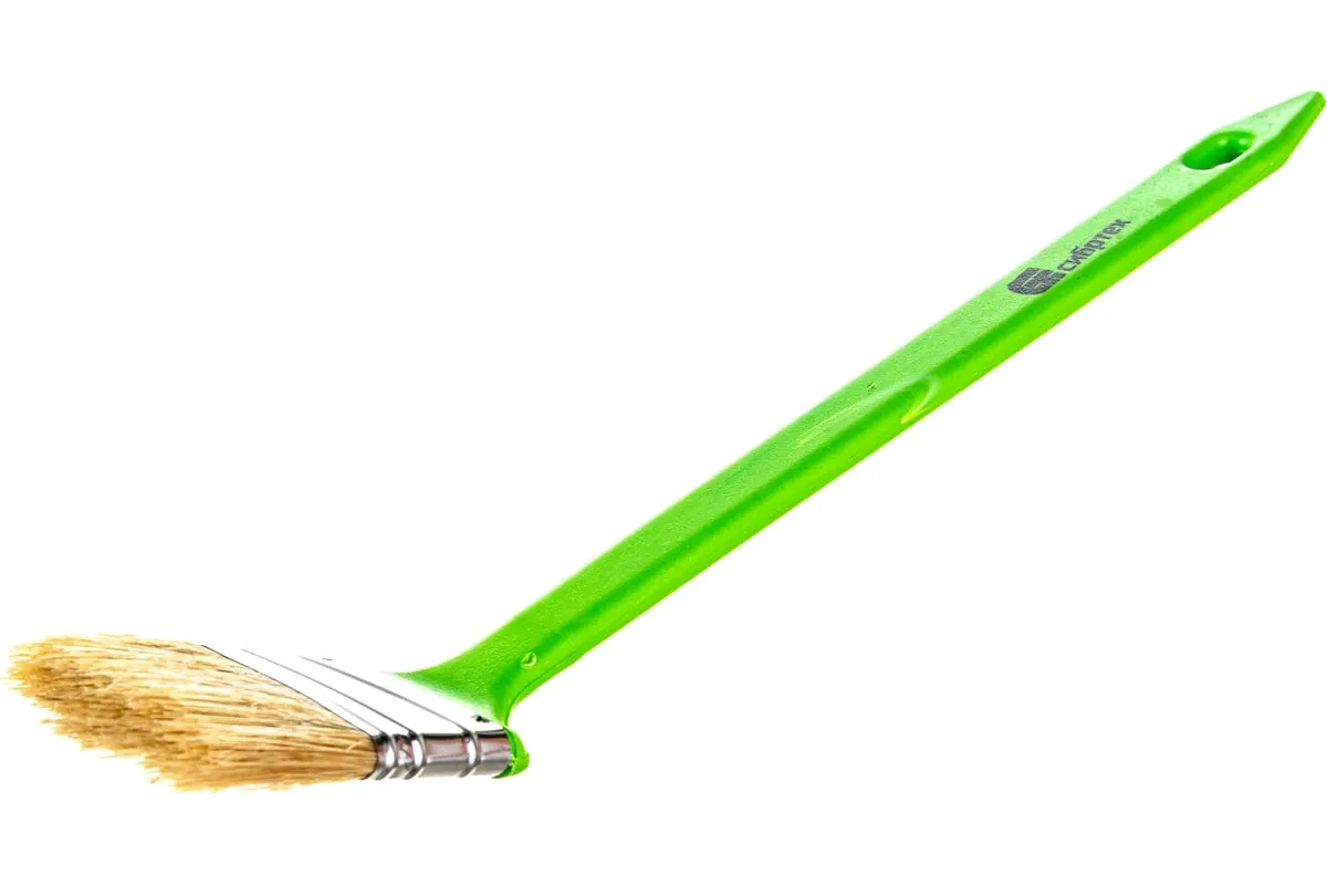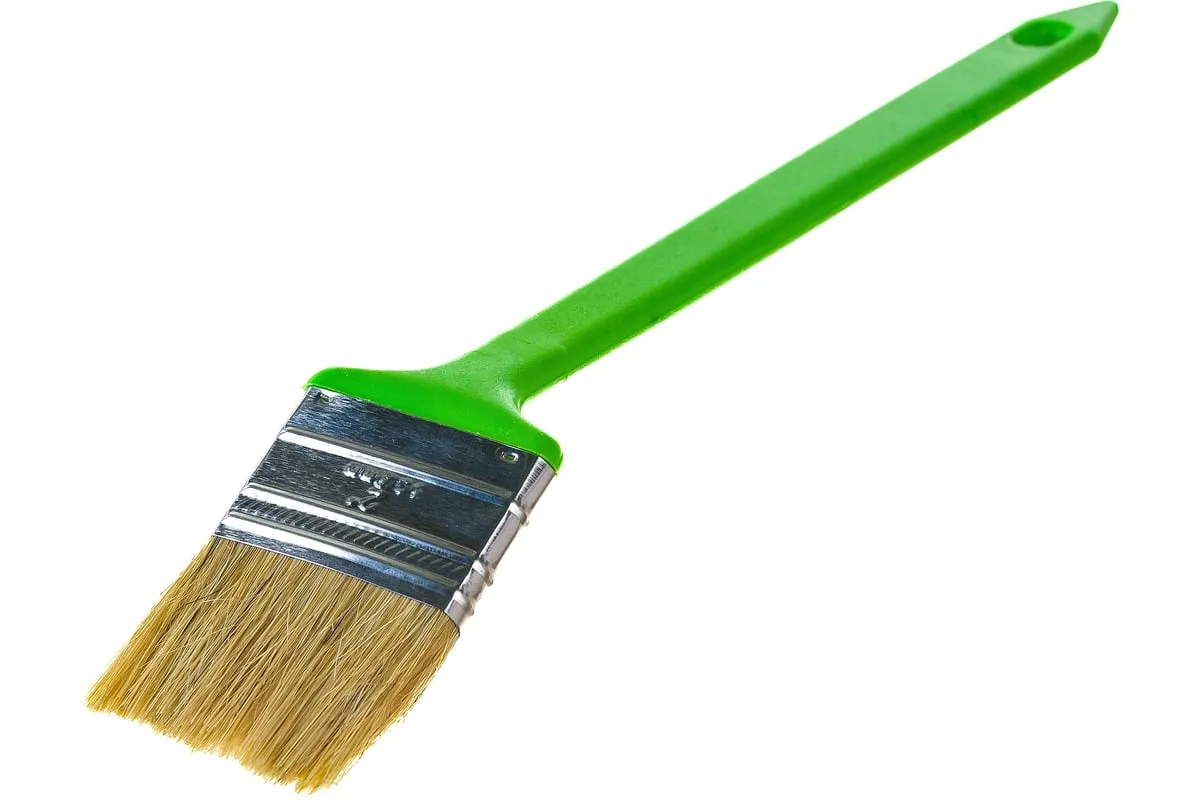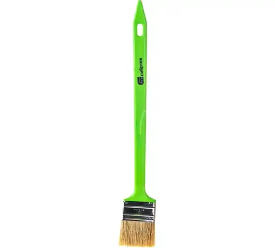 Радиаторная кисть Сибртех 83857 шириной 50 мм, с натуральной щетиной и пластиковой ручкой, позволяет окрашивать радиаторы, трубы, проволочные конструкции. Особенно удобна для покраски углов и стыков пола или потолка со стенами. Удлиненная ручка облегчает проведение малярных работ. Натуральная щетина с добавлением искусственного ворса устойчива к деформации и сохраняет упругость и краскообменные качества при использовании масляных красок и эмалей.