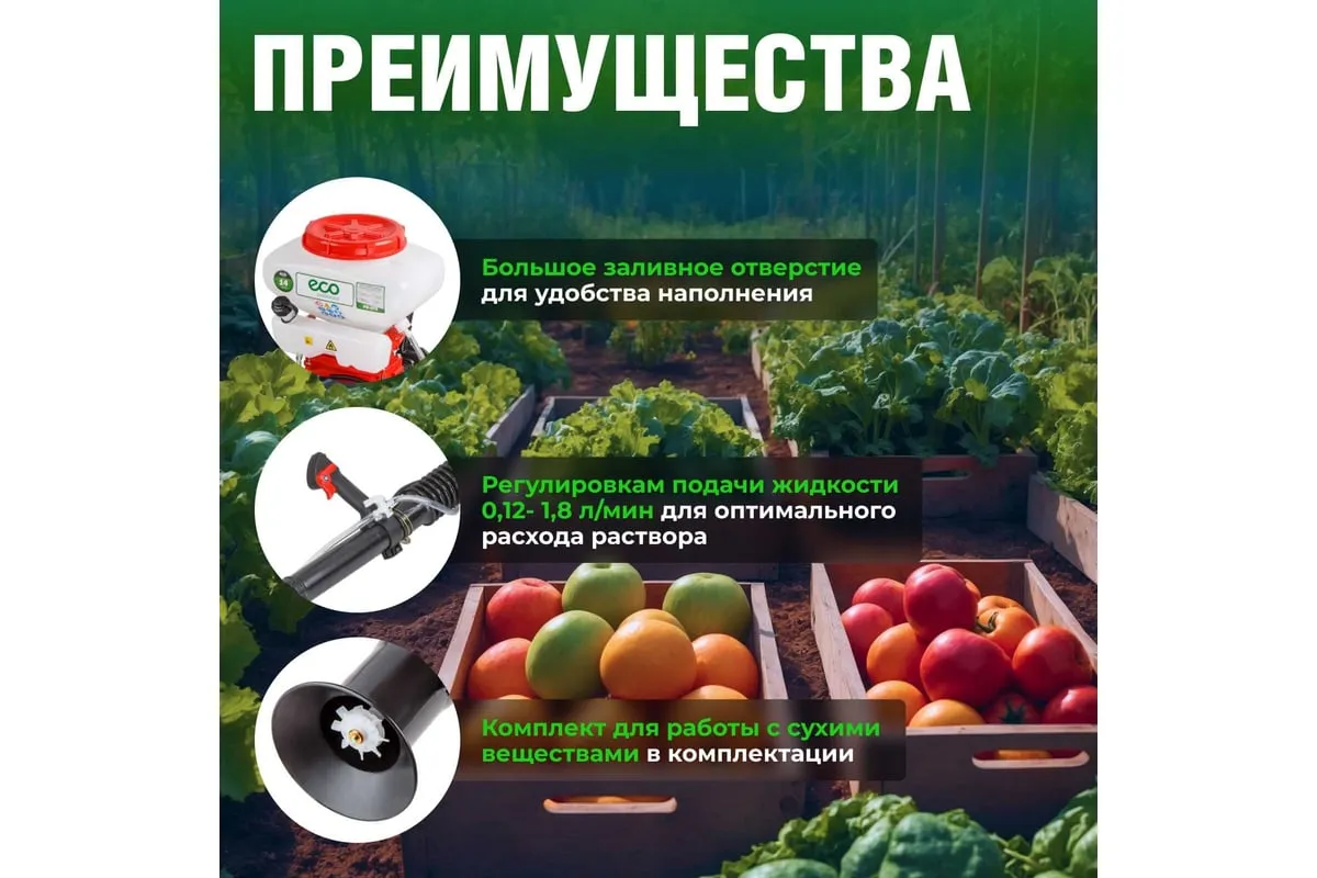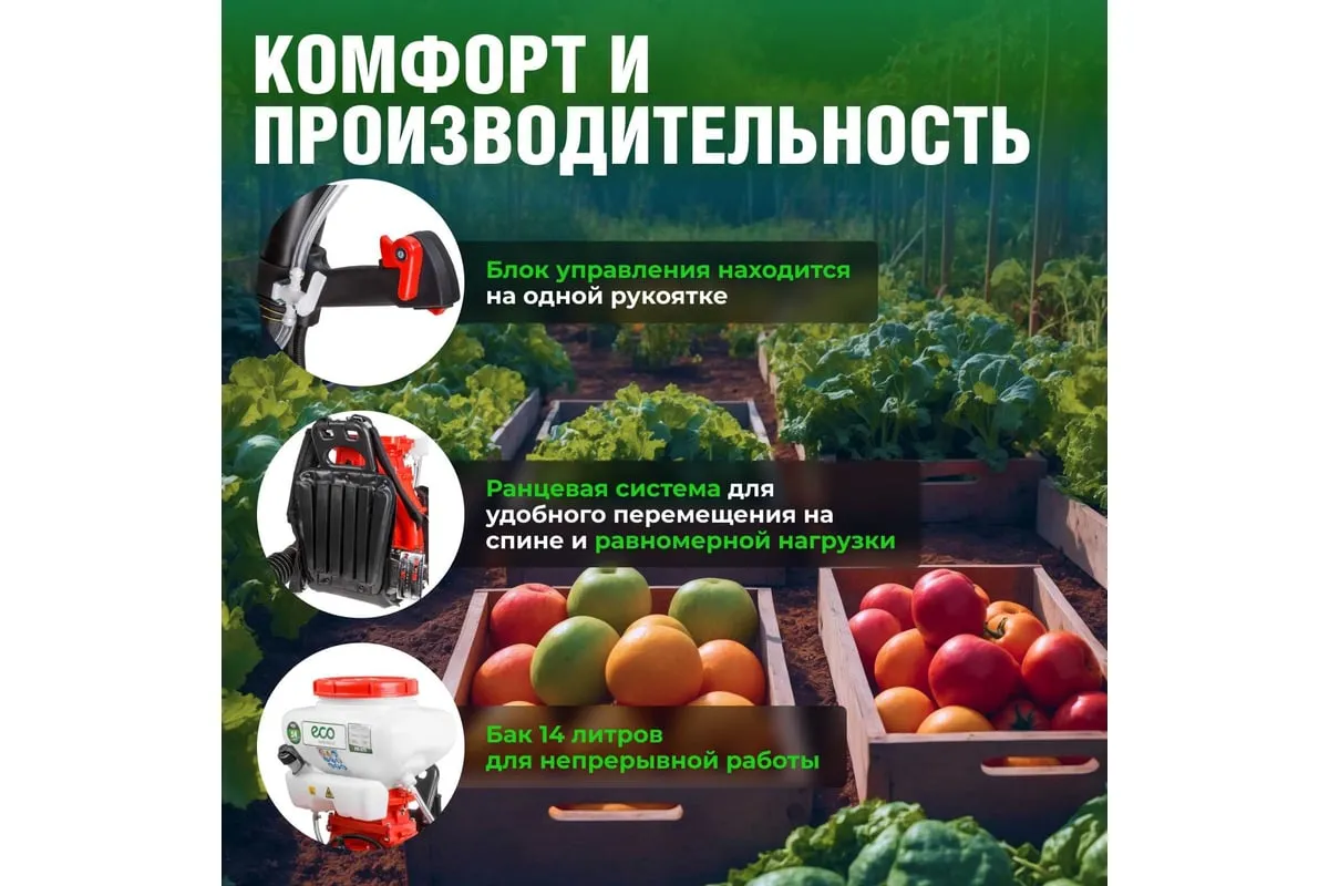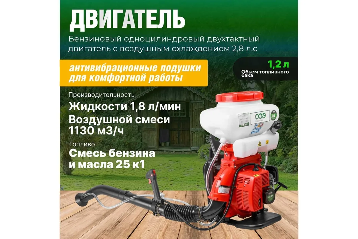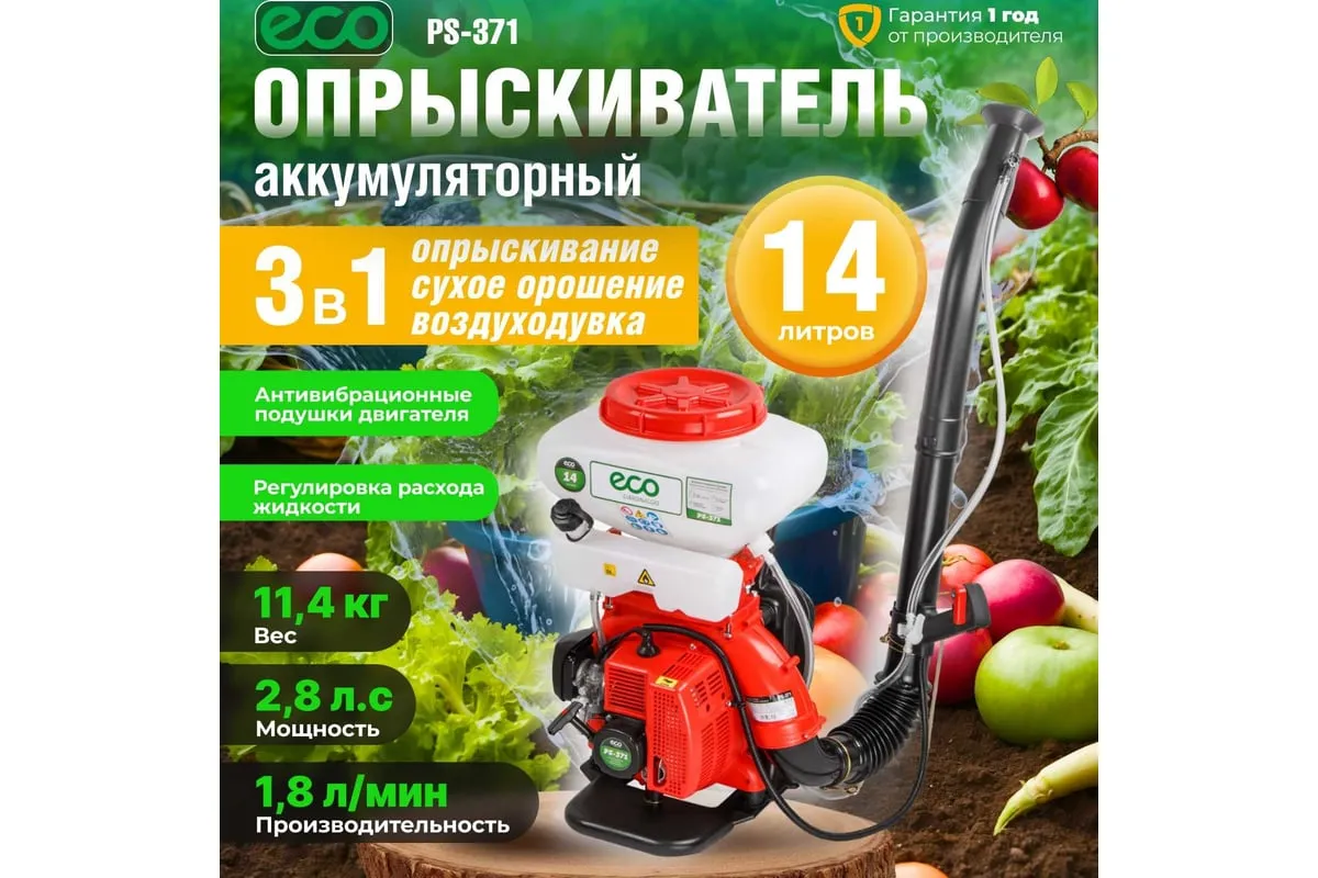 Ранцевый бензиновый опрыскиватель ECO PS-371 предназначен для распыления различных жидкостей в саду и на дачном участке.