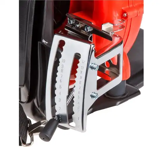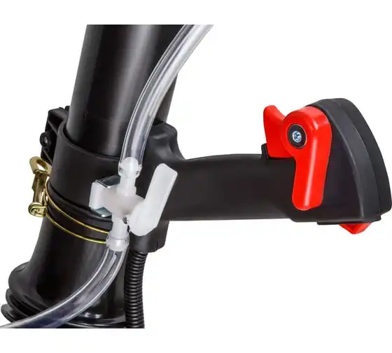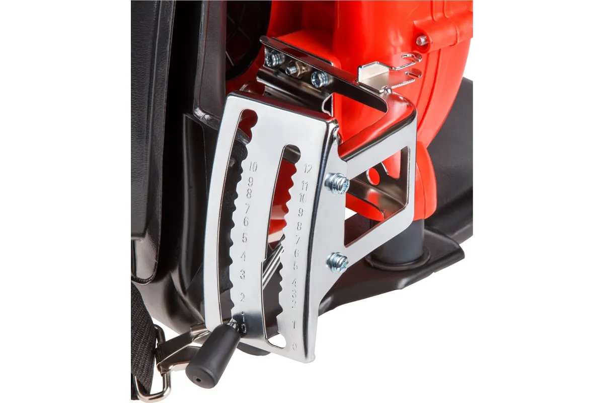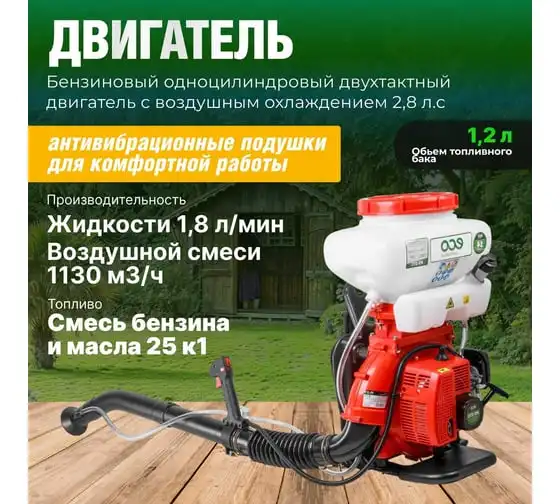 Оснащен двухтактным бензиновым двигателем и антивибрационными подушками двигателя.