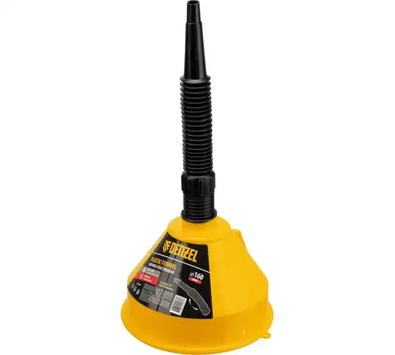 Воронка пластиковая 160 мм с металлическим ситом, непроливайкой и гибким наконечником Denzel 537208