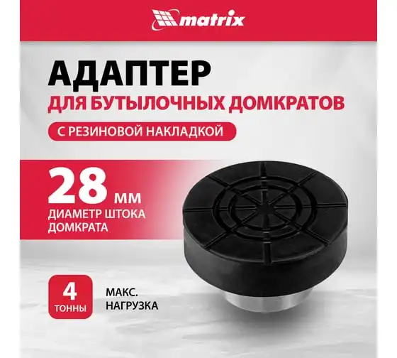 Адаптер для бутылочных домкратов с резиновой накладкой, диаметр штока 28мм MATRIX 50908
