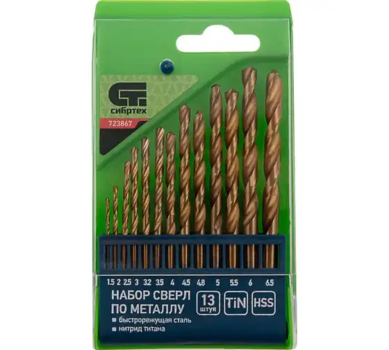 Набор сверл по металлу (1.5-6.5 мм; 13 шт.) СИБРТЕХ 723867