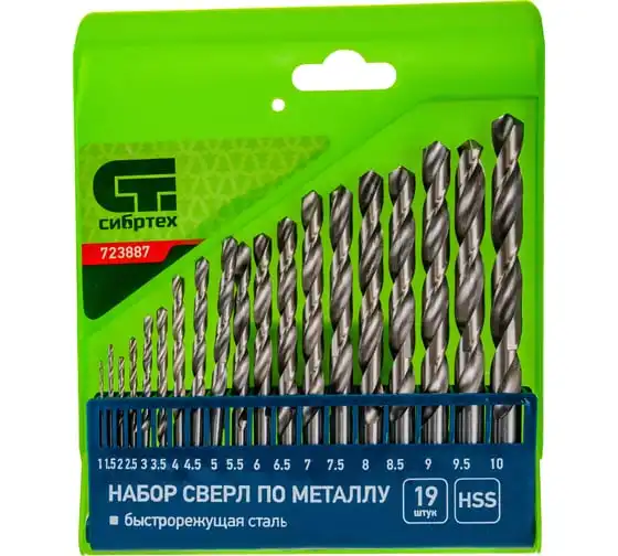 Набор сверл по металлу (1-10 мм; 19 шт.) СИБРТЕХ 723887