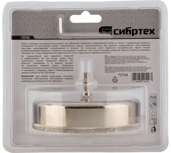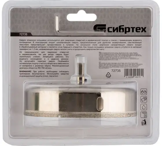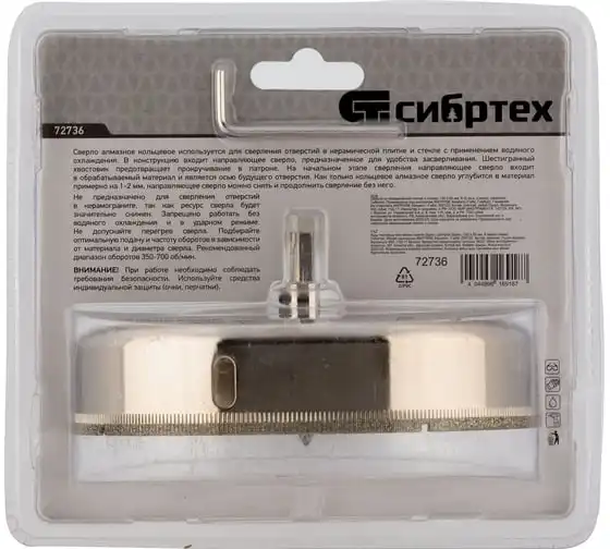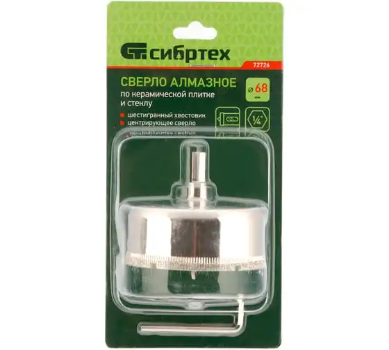 Сверло по керамической плитке и стеклу 68х55 мм СИБРТЕХ 72726