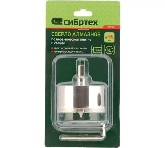 Сверло по керамической плитке и стеклу 55х55 мм СИБРТЕХ 72723