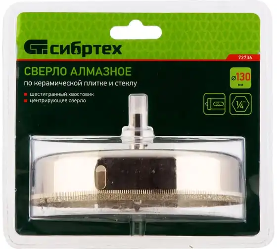 Сверло по керамической плитке и стеклу 130х55 мм СИБРТЕХ 72736