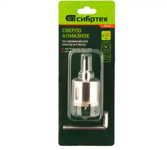 Сверло по керамической плитке и стеклу 30х55 мм СИБРТЕХ 72716