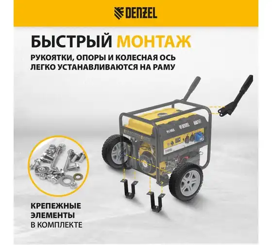Комплект транспортировочный колеса и ручки для генераторов PS DENZEL 946725