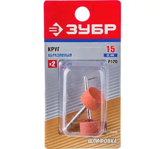 Шлифовальный абразивный круг Зубр на шпильке P 120 d 15x10x3.2 мм L 45 мм 2 шт. 35910