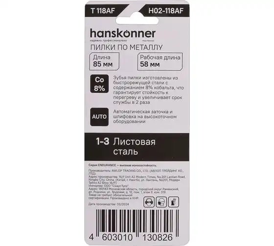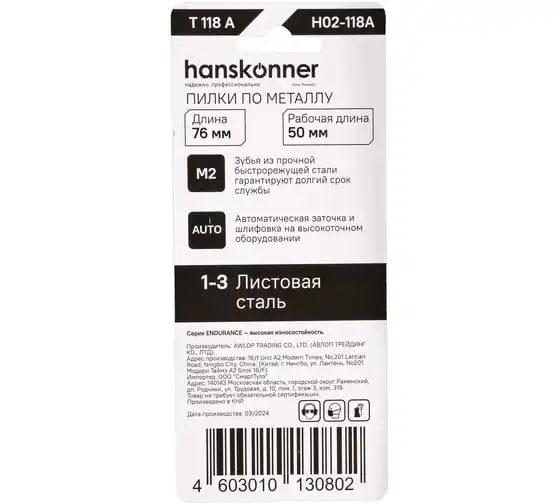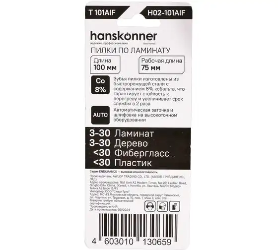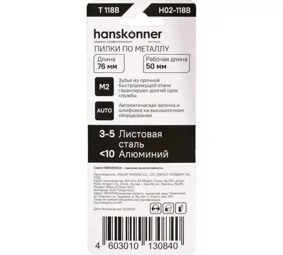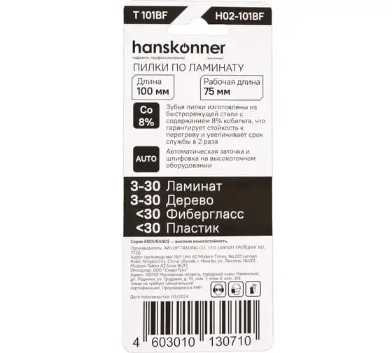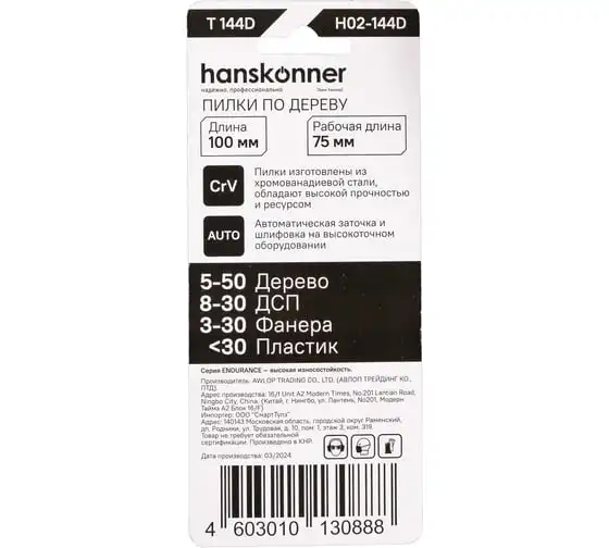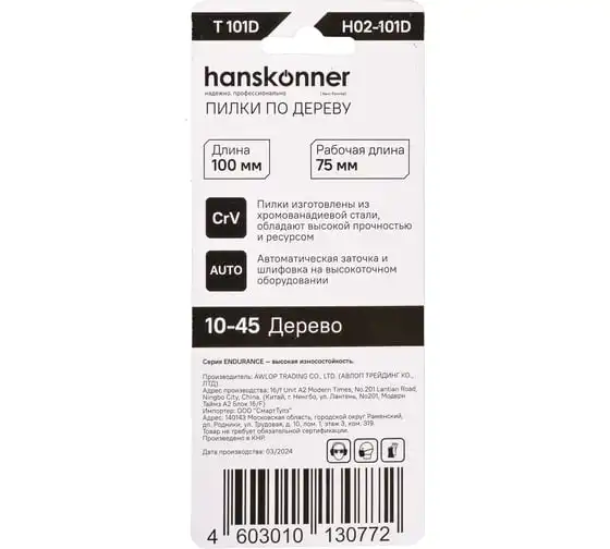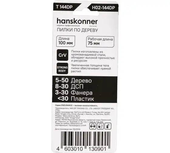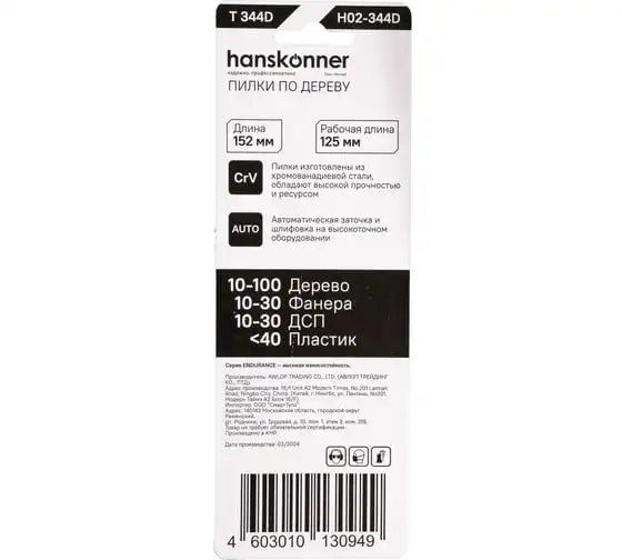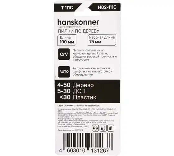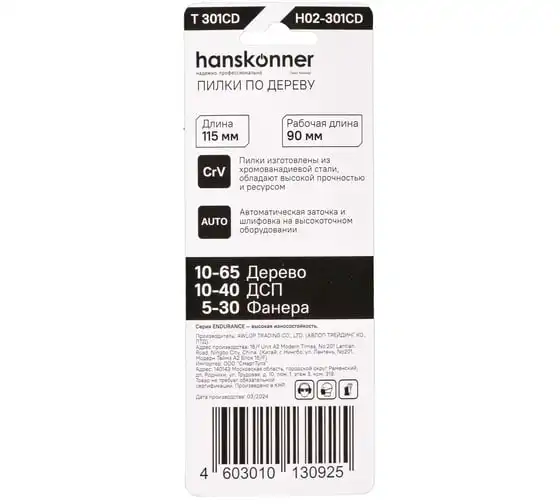 Пилки для лобзика Hanskonner H10-WOODSET1