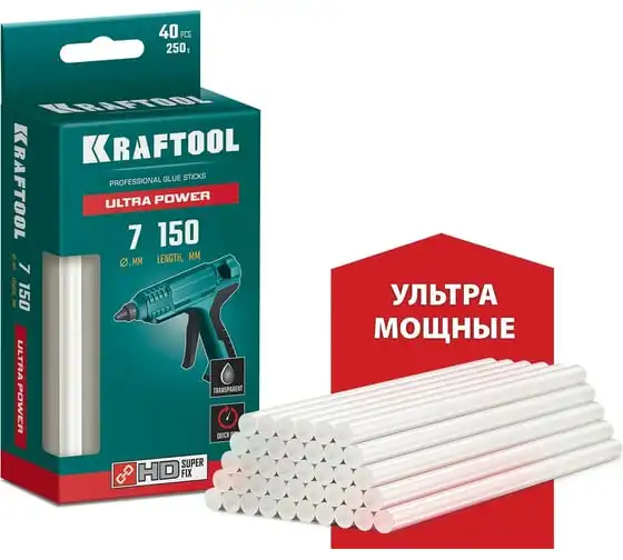 Ультрамощные прозрачные клеевые стержни KRAFTOOL Ultra Power 40 шт, 7x150 мм 06837-40