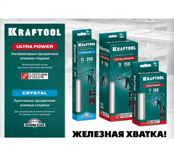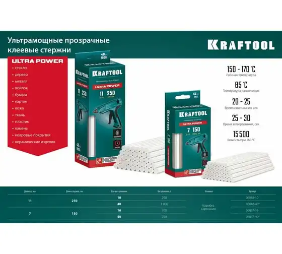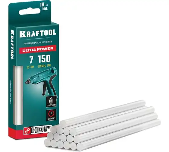 Ультрамощные прозрачные клеевые стержни KRAFTOOL Ultra Power 16 шт, 7x150 мм 06837-16