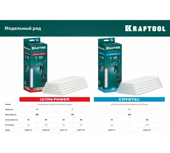Кристально прозрачные клеевые стержни KRAFTOOL Crystal 10 шт, 11x250 мм 06846-10