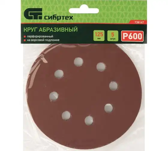 Круг абразивный перфорированный на ворсовой подложке под липучку 5 шт, 125 мм, P600 СИБРТЕХ 738167
