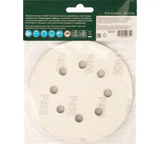 Круг абразивный перфорированный на ворсовой подложке под липучку 5 шт, 125 мм, P400 СИБРТЕХ 738147