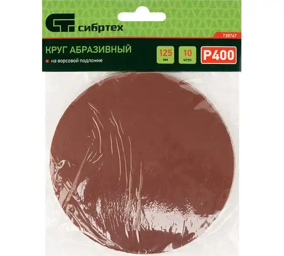 Круг абразивный на ворсовой подложке под липучку 10 шт, 125 мм, P400 СИБРТЕХ 738747