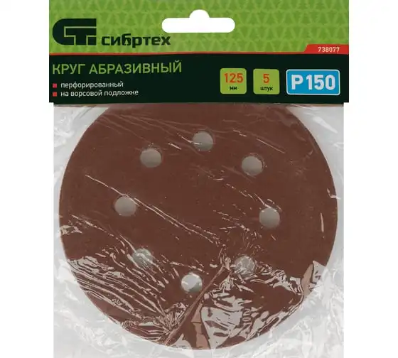 Круг абразивный перфорированный на ворсовой подложке под липучку 5 шт, 125 мм, P150 СИБРТЕХ 738077