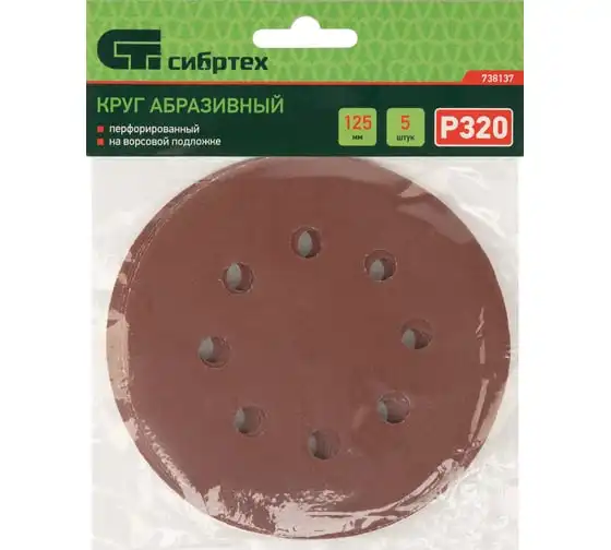 Круг абразивный перфорированный на ворсовой подложке под липучку 5 шт, 125 мм, P320 СИБРТЕХ 738137