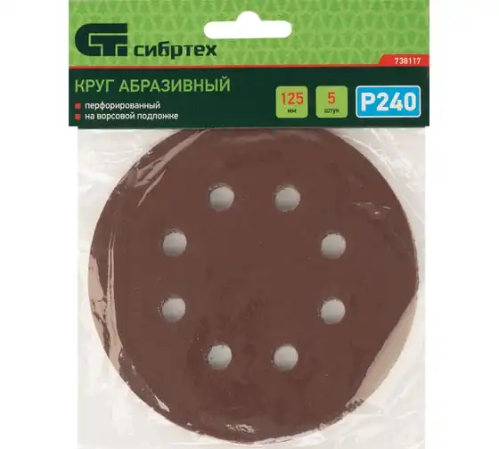 Круг абразивный перфорированный на ворсовой подложке под липучку 5 шт, 125 мм, P240 СИБРТЕХ 738117