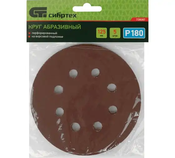 Круг абразивный перфорированный на ворсовой подложке под липучку 5 шт, 125 мм, P180 СИБРТЕХ 738087