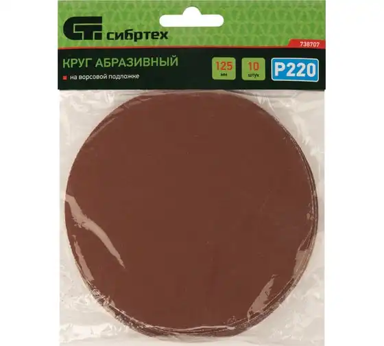 Круг абразивный на ворсовой подложке под липучку 10 шт, 125 мм, P220 СИБРТЕХ 738707